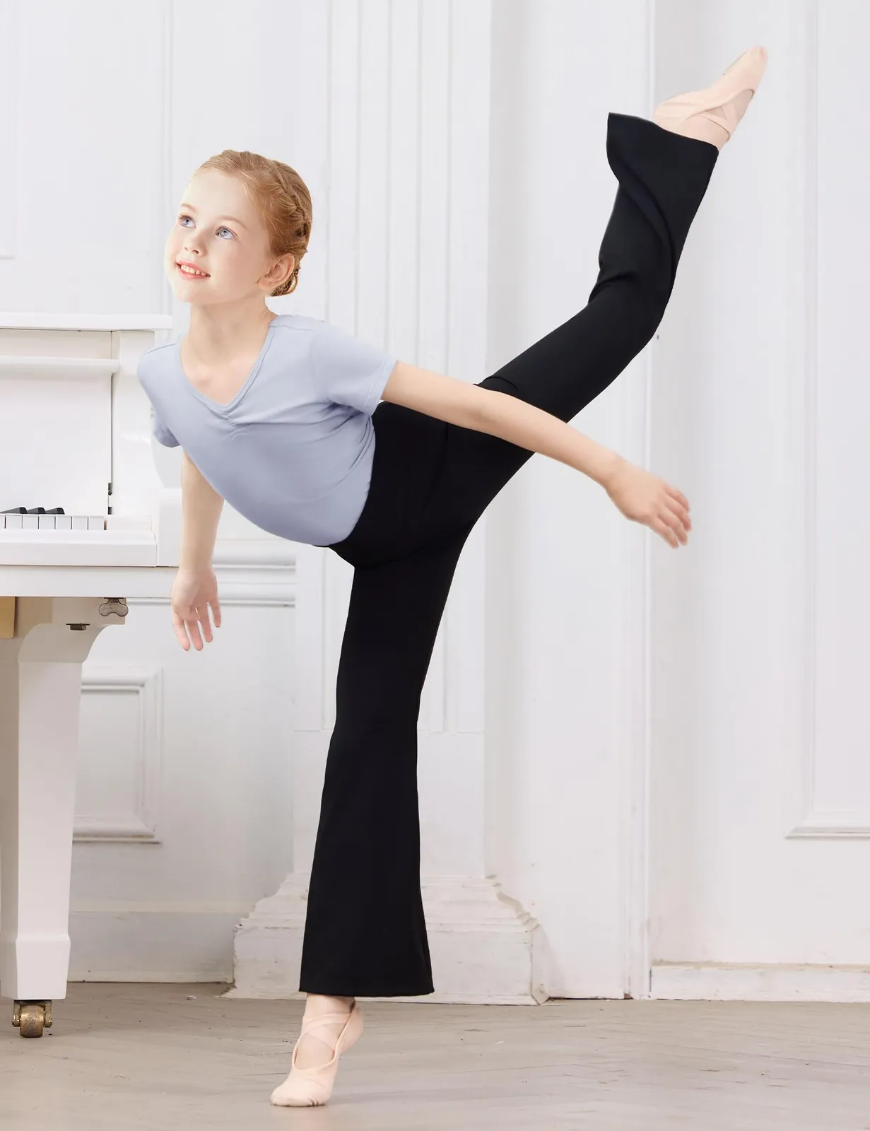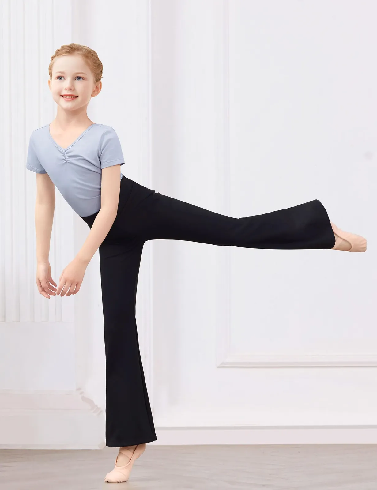 多目的な使用:バレエ、ジャズ、ヨガ、カジュアルウェアに最適なこのフレアパンツは、ファッション性と機能性を兼ね備えており、小さなダンサーを快適で自信に満ちたものにしてくれる!