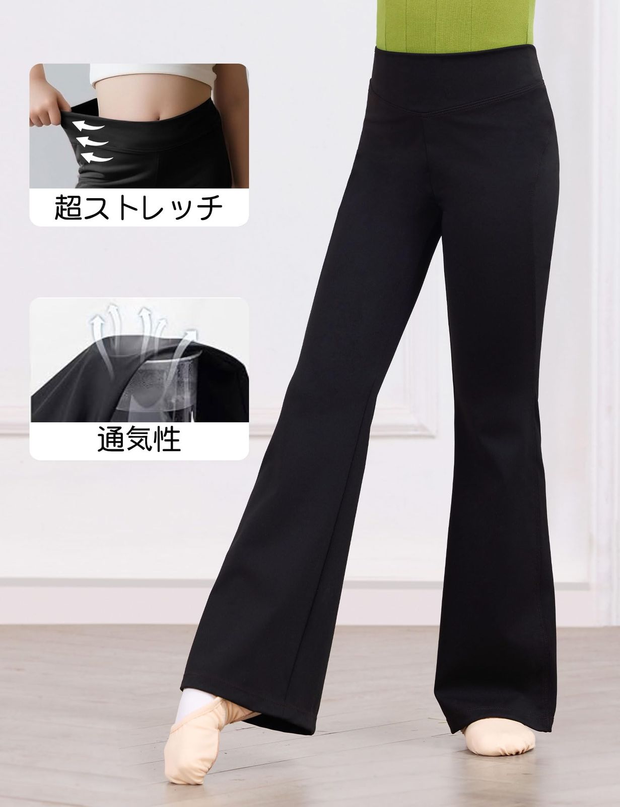[Daydance] キッズ ジュニア バレエパンツ ダンス フレキシブル レギンス 普段着 フレアダンスパンツ ブラック