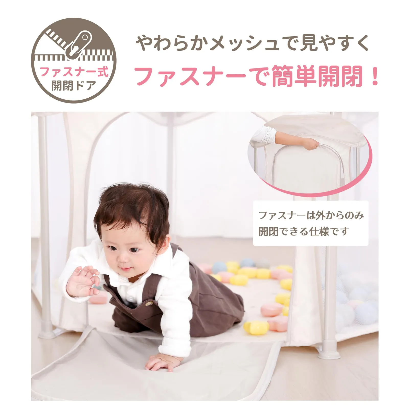 永和 サッとつかえるベビーサークル ベビー ゲート・ドア用品 工具不要 組み立て簡単 メッシュ素材 コンパクト収納 ファスナー扉 洗える インテリア馴染み