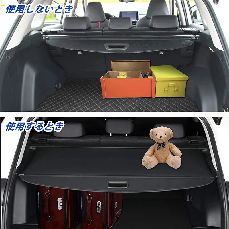 【プライバシー保護】ラゲッジルームに置いた荷物を隠す事で、プライバシーを保護し、外から見えない為車上荒らしを予防できます。またトノカバーは上に荷物を置くことで、車内の収納スペースを広げることができます。