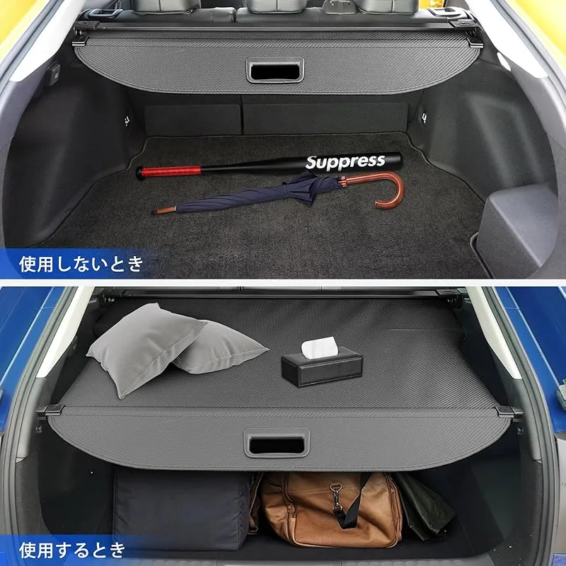 【プライバシー保護】このプリウス60系 トノカバーがなければ、置いた荷物が外から見えてしまい、プライバシーが守られません。これにより、車上荒らしのリスクが高まります。また、プリウス トノカバーは上に荷物を置くことができるため、車内の収納スペースを有効に活用できます。このアクセサリーがあれば、収納のしやすさと車内スペースの最大化が期待できます。