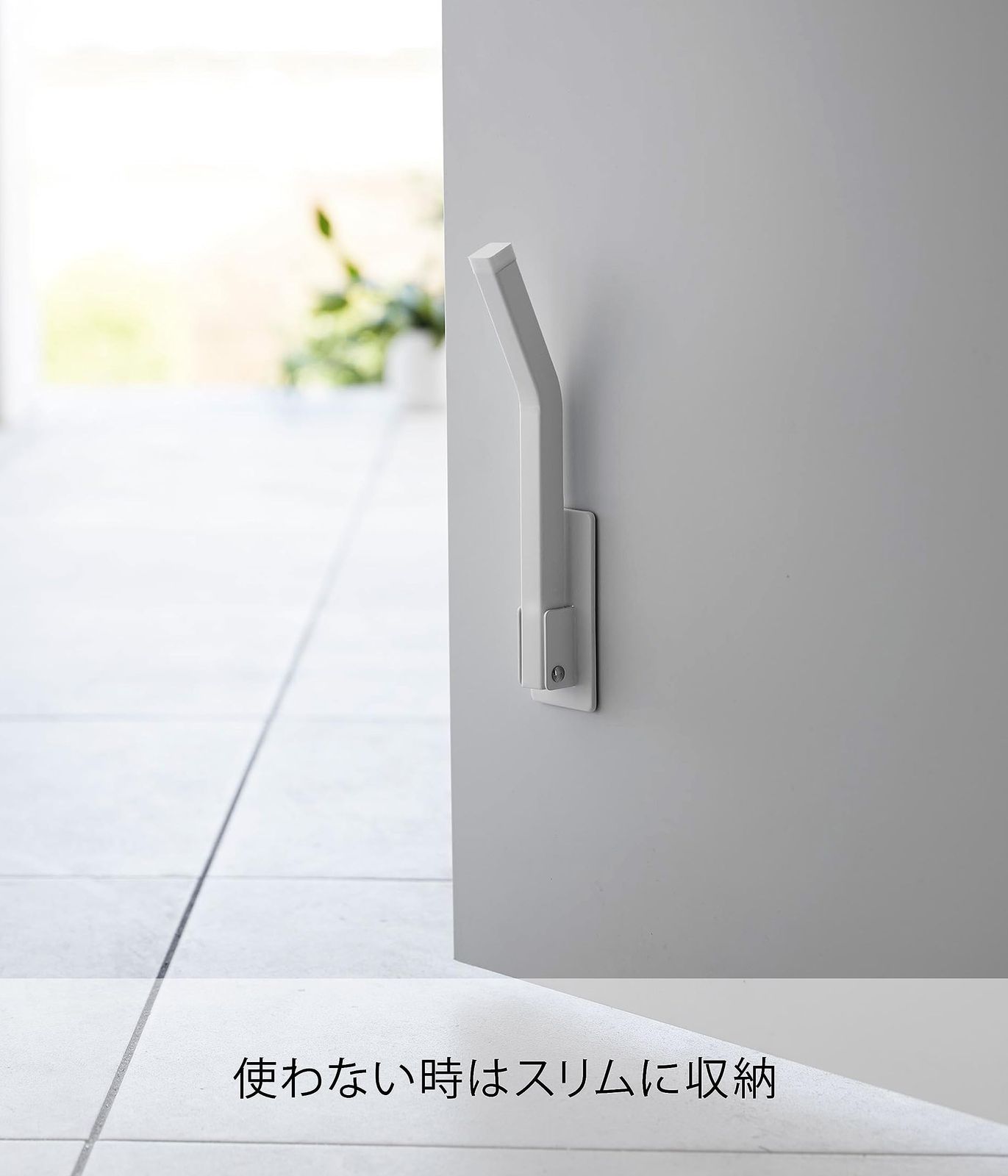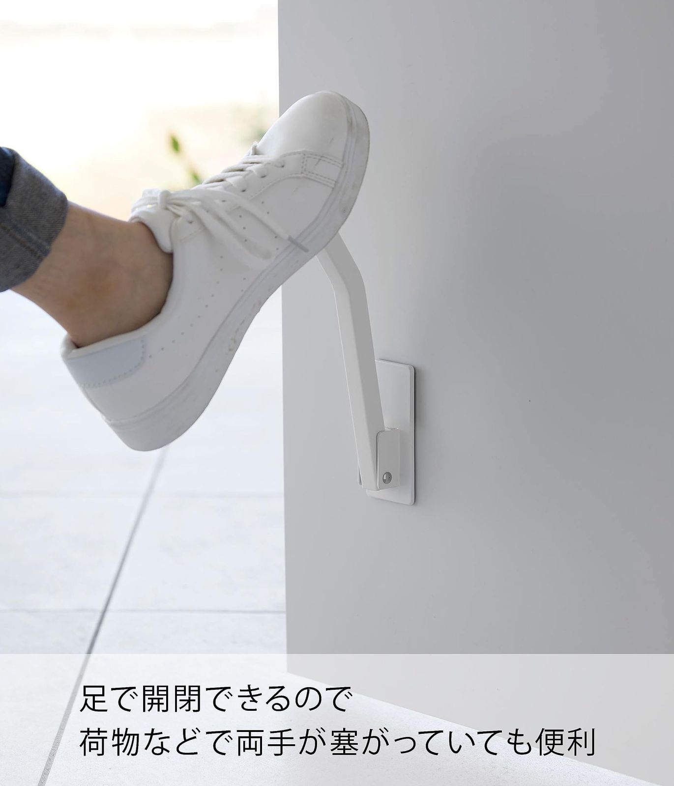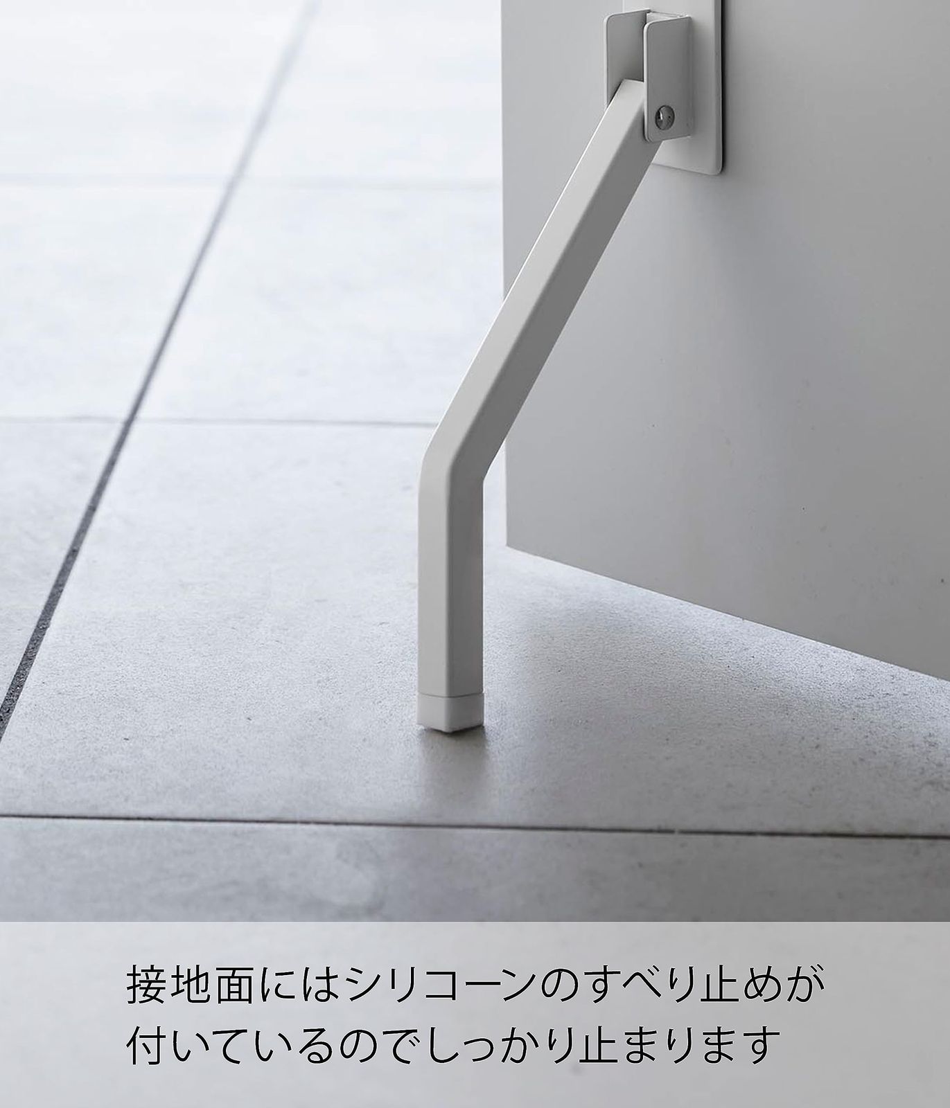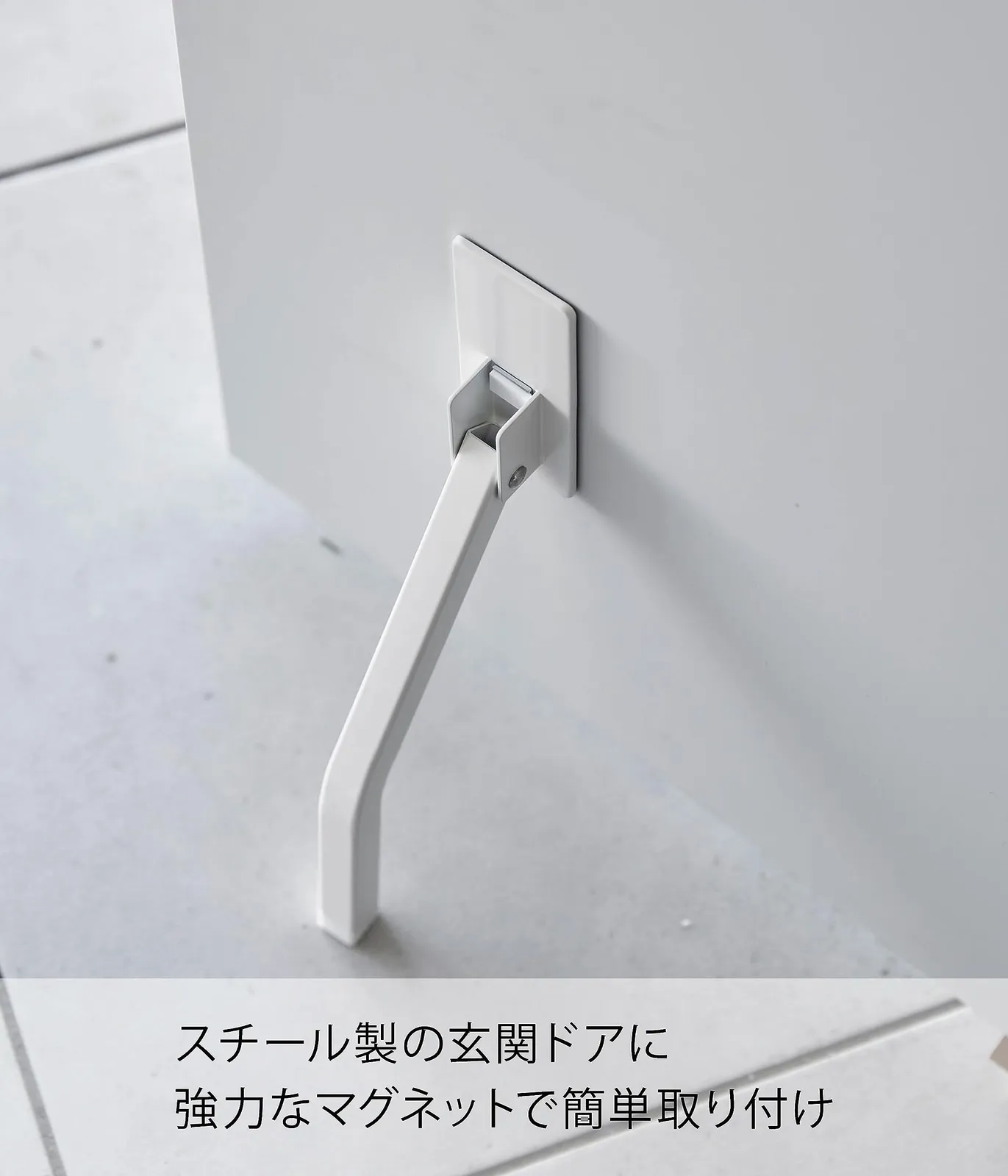 山崎実業(Yamazaki) マグネット 折り畳みドアストッパー ロング ホワイト (使用時)約W4.5×D8×H28cm スマート smart 強力マグネット 簡単取付 玄関ドア 片足で操作可能 3724
