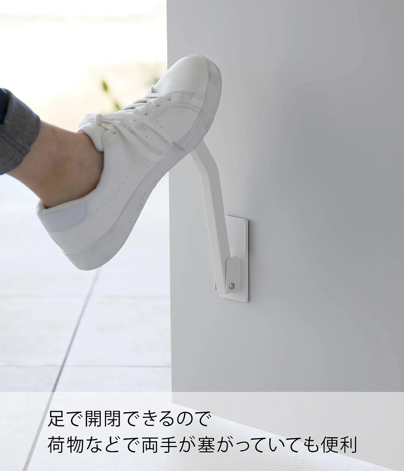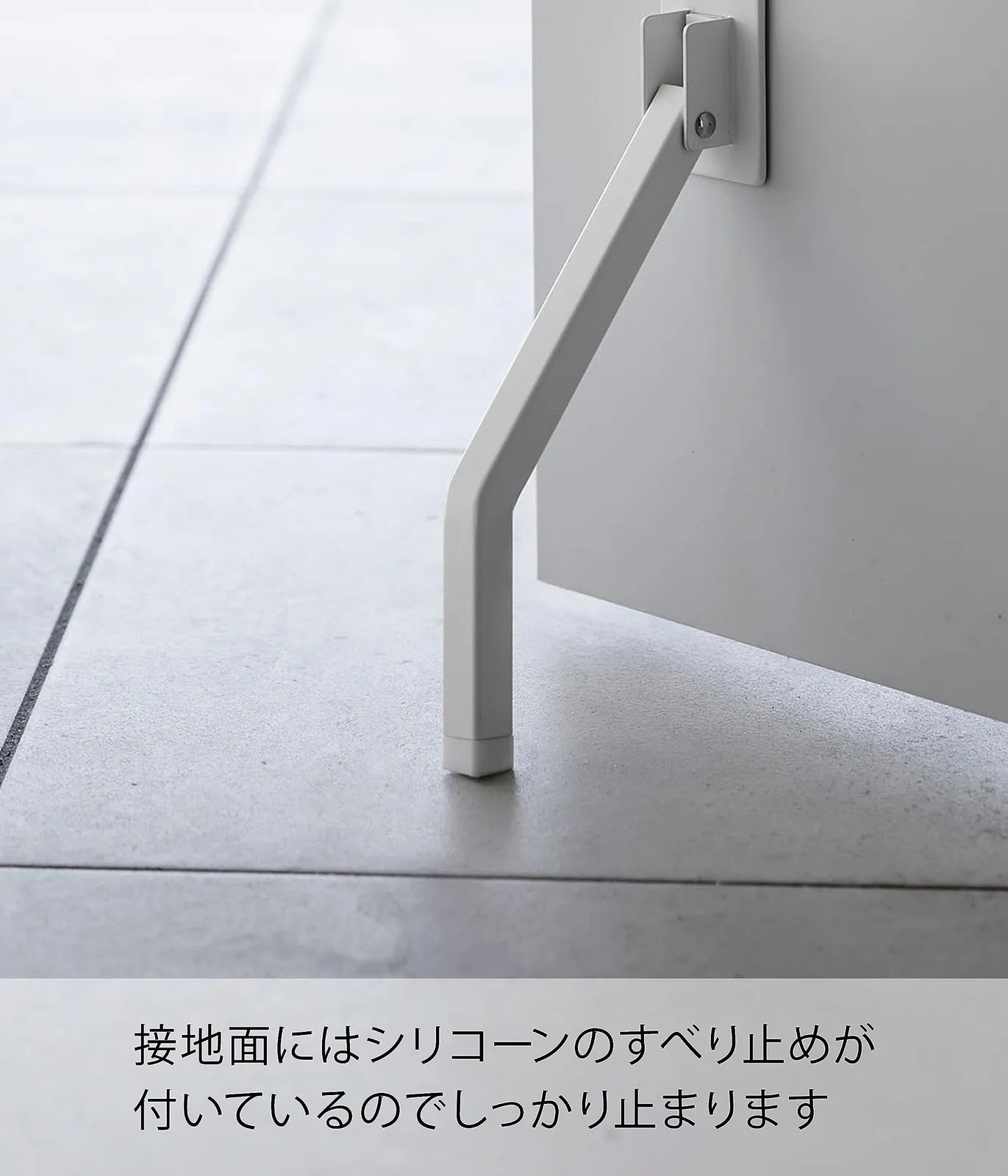 サッと広げてサッとしまえるシンプルで機能的なドアストッパーです。