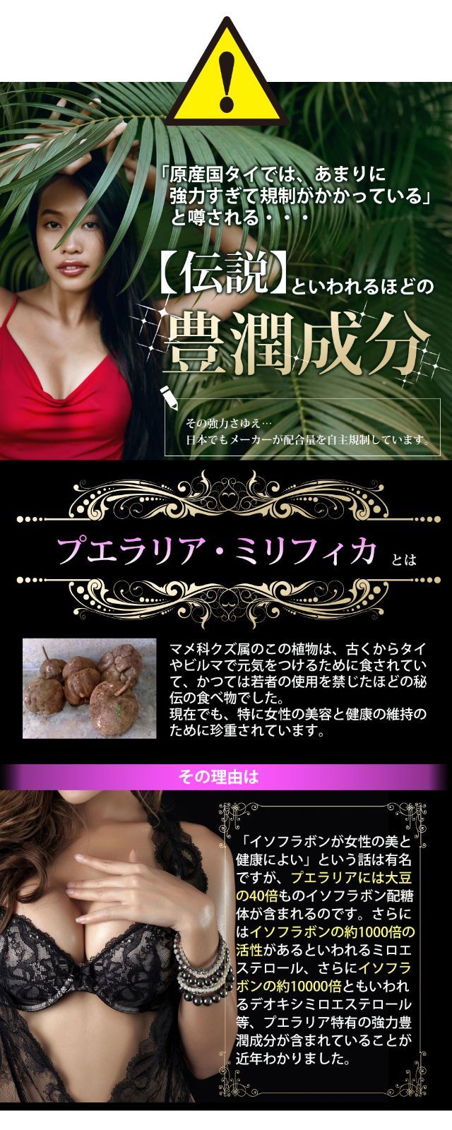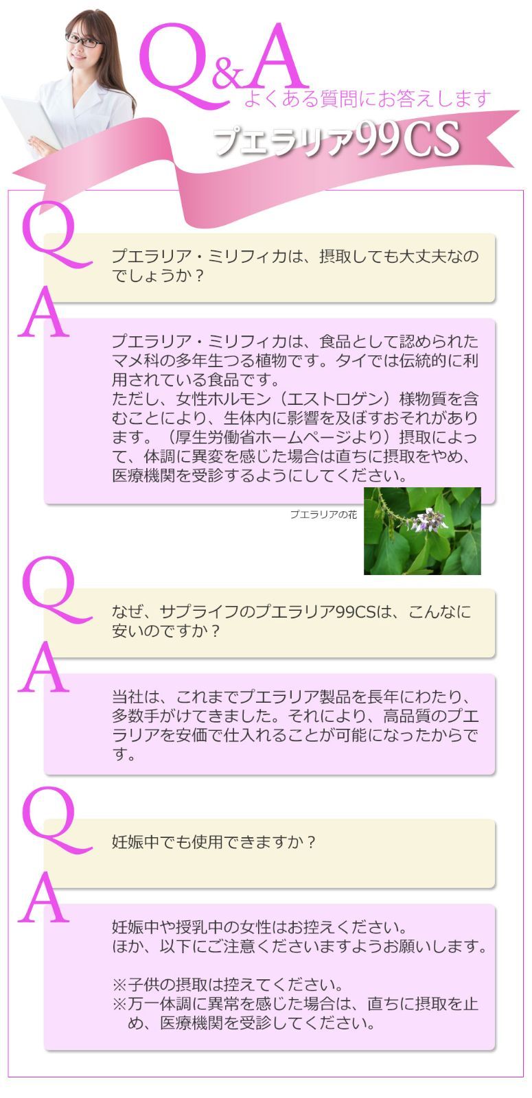 ■原材料名:プエラリア・ミリフィカ粉末、還元麦芽糖、デキストリン、セルロース、ステアリン酸カルシウム、微粒二酸化ケイ素