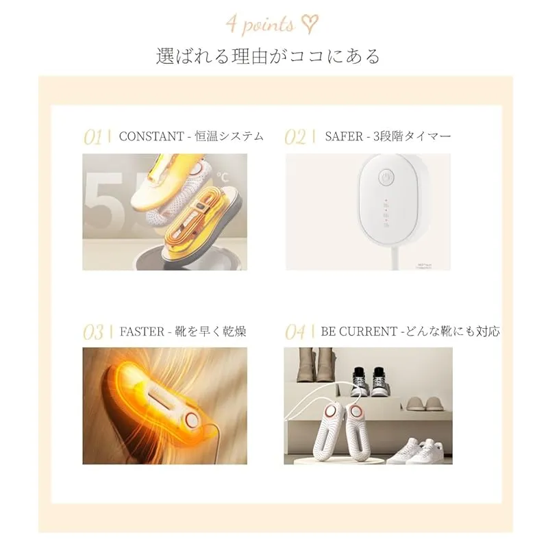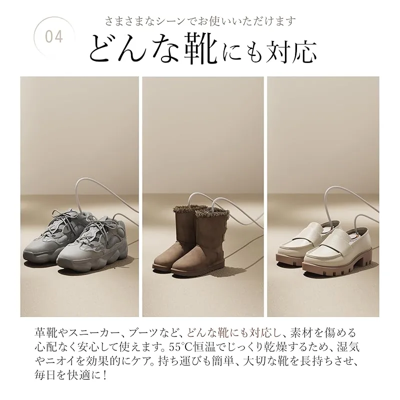 【スマート温度管理で靴を守る】 ??? ?? 約55℃の恒温加熱で、靴を傷めずにやさしく乾燥。高級革靴やデリケートな素材にも最適! ???