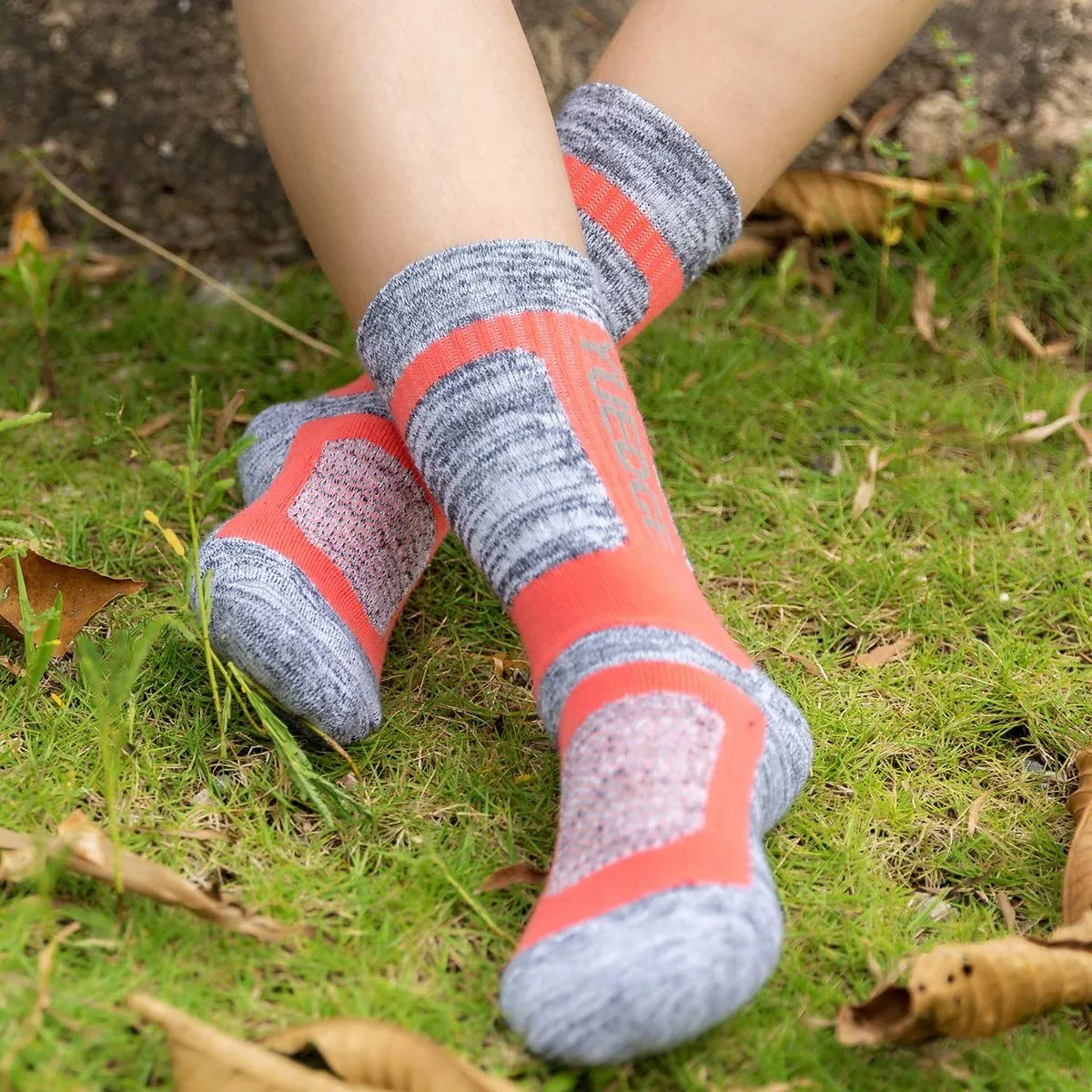 [YUEDGE] 靴下レディース スポーツソックス 登山用 厚手 アウトド トレッキング ウォーキング クッション 丈夫 作業 仕事靴下 クルー丈 高級綿 吸汗 防臭 21-27cm 5足セット