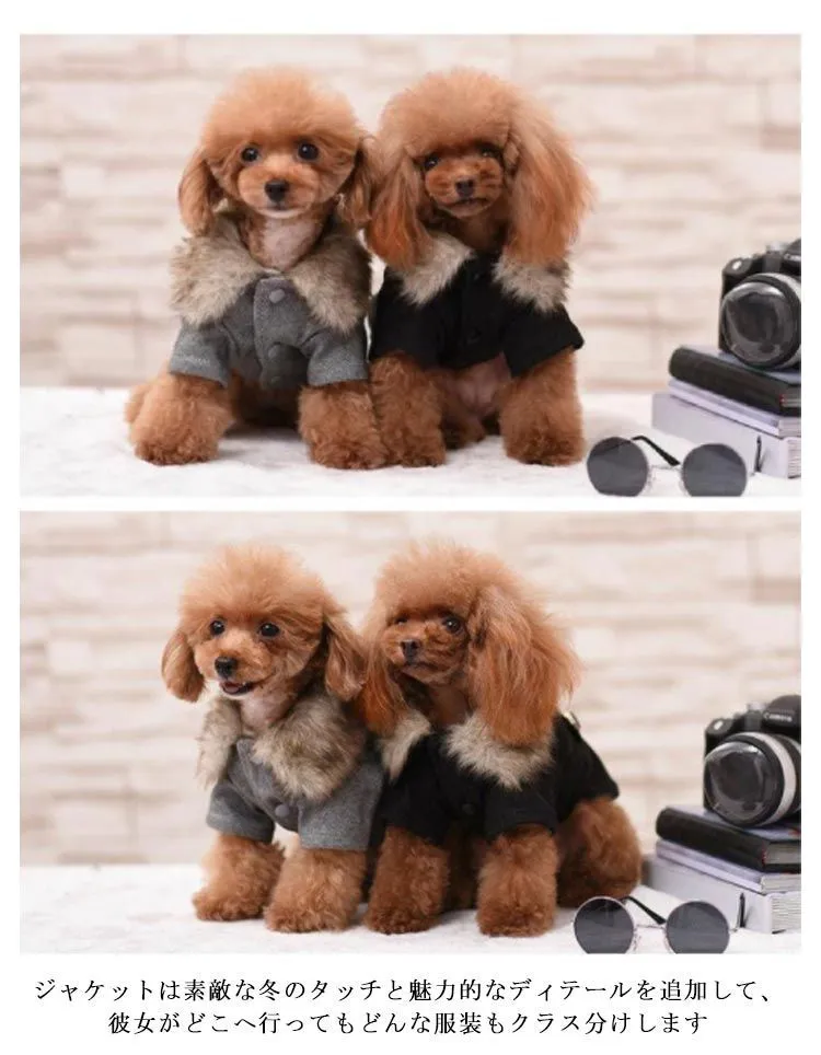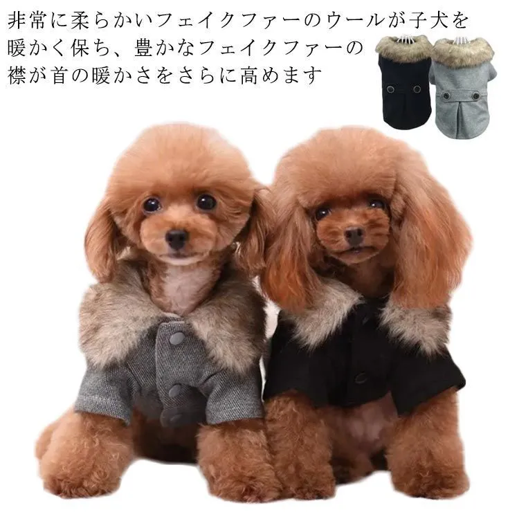 非常に柔らかいフェイクファーのウールが子犬を暖かく保ち、豊かなフェイクファーの襟が首の暖かさをさらに高めます