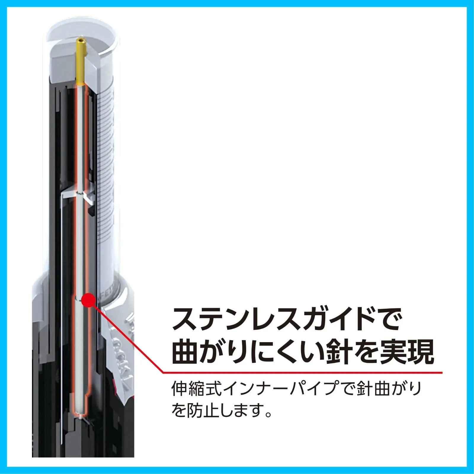 ステンレスガイドパイプを採用し下地に刺さった際の針曲りを防ぎます。