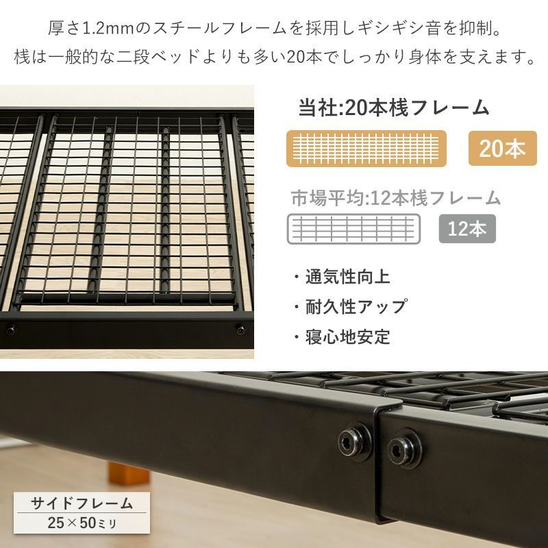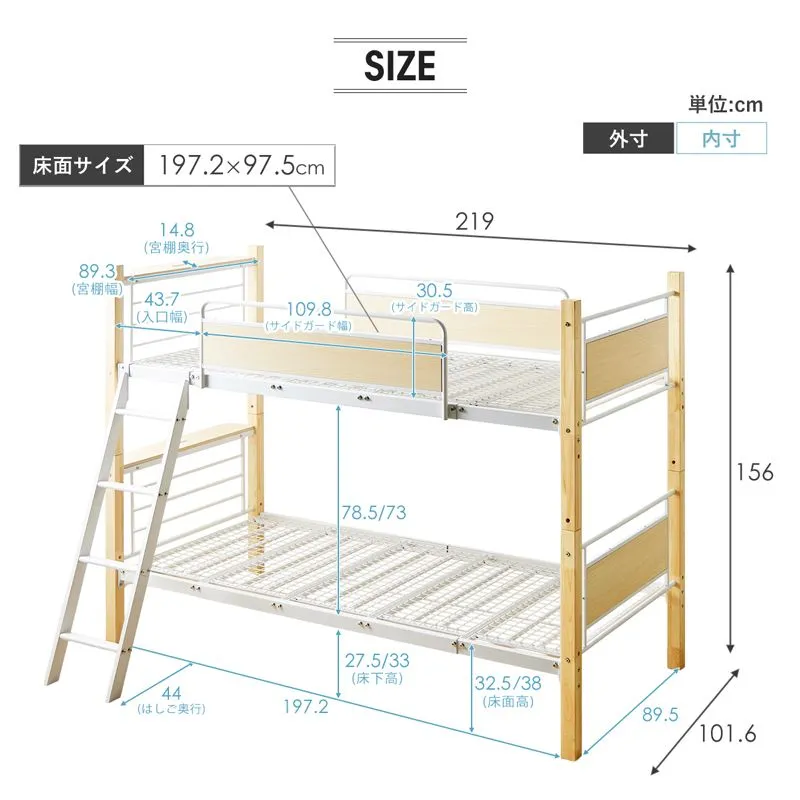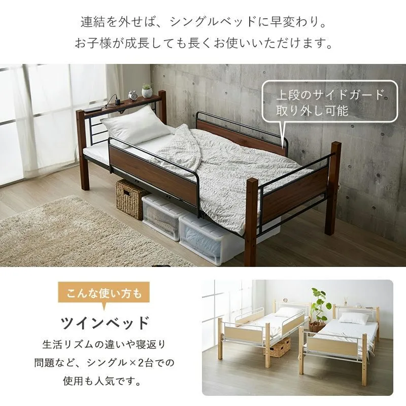 「家族で使えるベッドが欲しい」「子どもが成長しても長く使いたい」 そんな願いを叶える、頼もしい木製×アイアンの2段ベッドが登場です。 しっかりとしたスチール構造と天然木のぬくもりが融合し、温かみのあるデザインと抜群の安定感を両立。耐荷重は安心の250kgで、お子様から大人まで快適に眠れます。 ライフスタイルに合わせて「2段ベッド」「シングル」「キングサイズ」と自由に変化する3WAY仕様。家族の成長に寄り添いながら、長く使える一台です。 毎日の眠りを、もっと快適に、もっと安心に。このベッドがあなたの暮らしを優しく支えます。