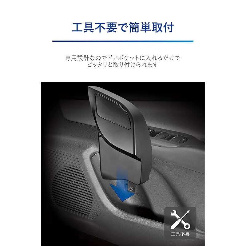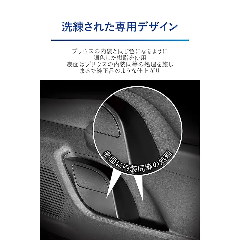 ●洗練されたプリウス専用デザイン 内装色と同じ色になるように調色した樹脂を使用しています。ボディはプリウスのドアポケット内部の質感に合わせたシボ加工を施すことで、車両との一体感を向上させています。