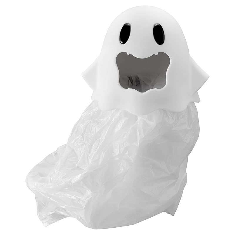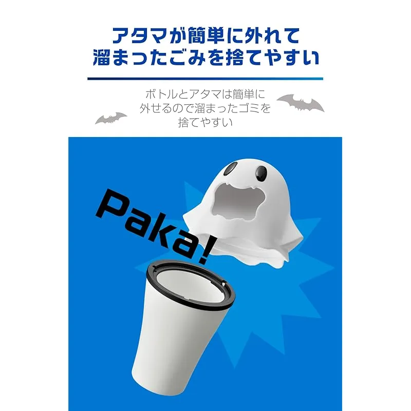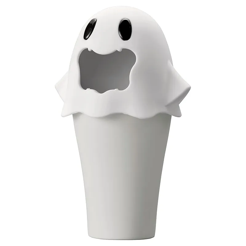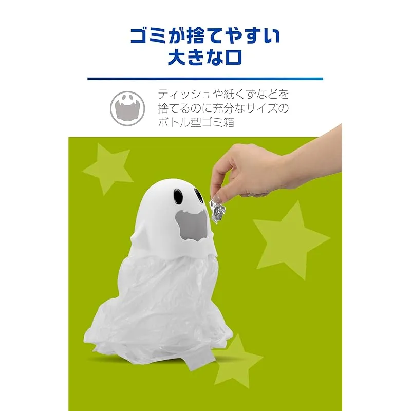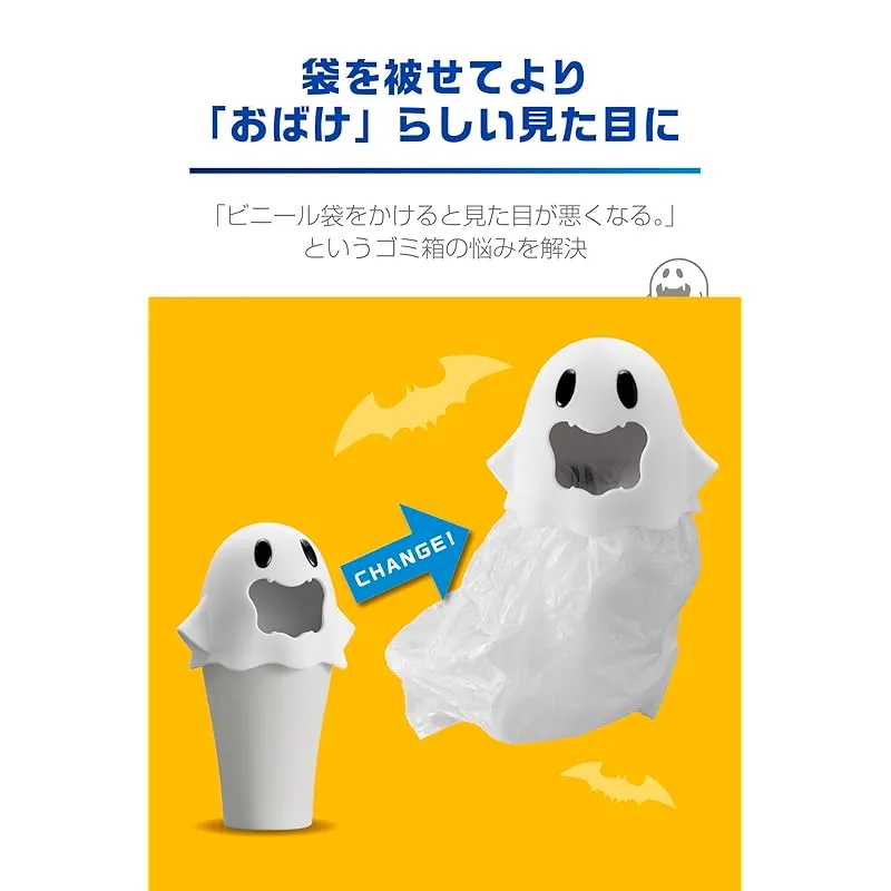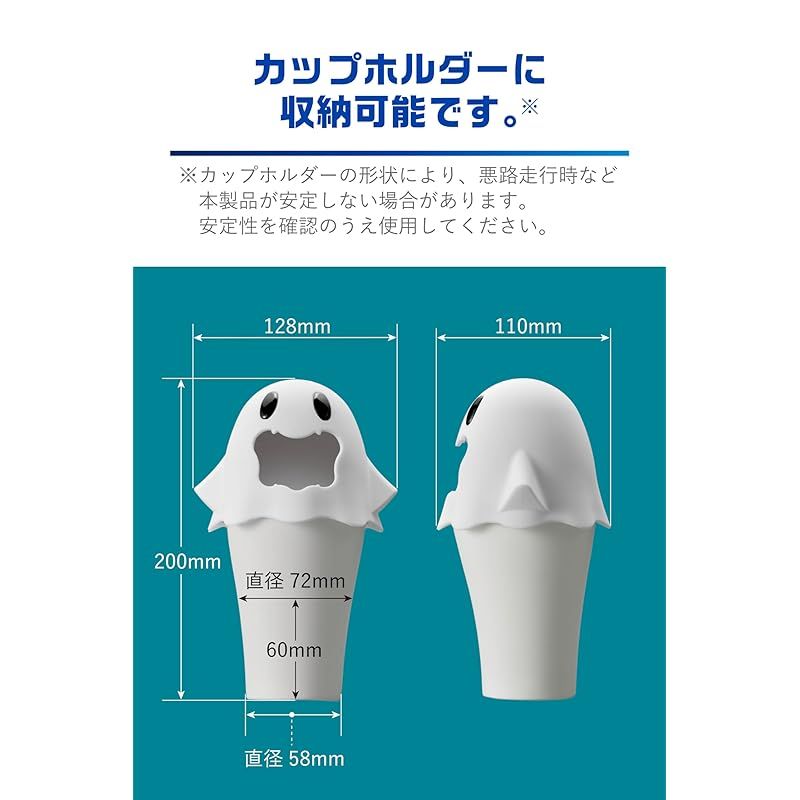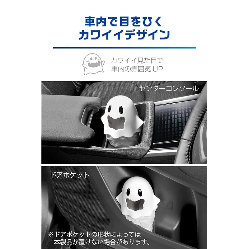 【??????かぶせたゴミ袋も可愛く見える、カップホルダーに置くおばけゴミ箱】 ビニール袋をかぶせることでよりおばけらしい見た目になるため、ゴミ箱の見た目を損なうという悩みを解決したデザインになります。