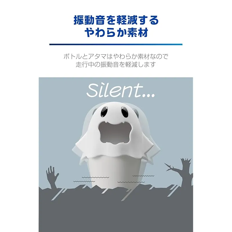 【??????ボトルの表面部分に軟材のエラストマー樹脂を採用し、走行中の振動音を軽減】 ボトル部分には軟質樹脂エラストマーを採用し、手触りの良い表面を実現しました。 また、プラスチック素材と比べて走行中の振動音を軽減します。
