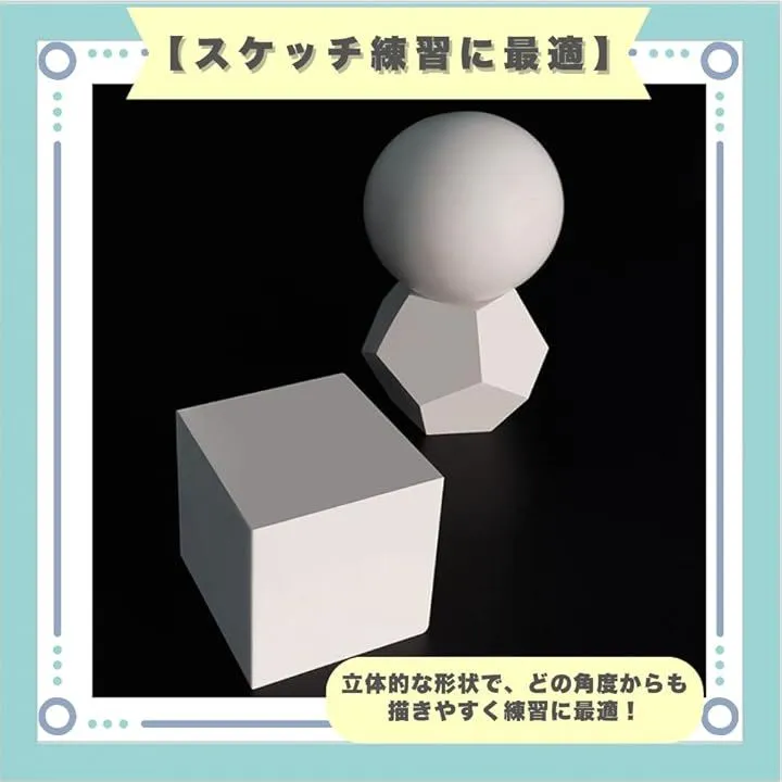 「スケッチ練習に最適」立体的な形状で、どの角度からも描きやすく練習に最適。