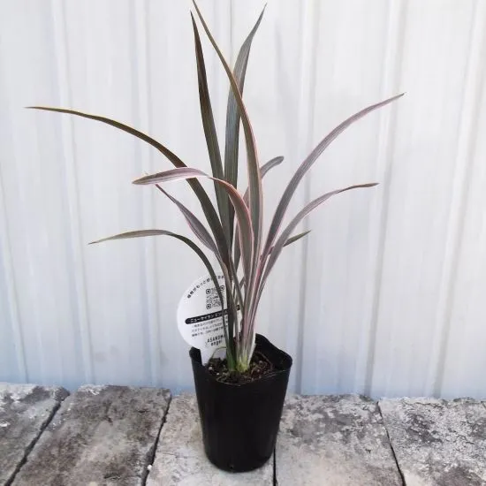3号サイズのポット苗です。 写真と同サイズで同品質の商品をお送りします。 ニューサイランは扇状に伸びた細長い葉を主に鑑賞する植物です。葉の色は多彩で庭に植えるカラープランツとしてお勧めです。商品は、灰緑色の葉にピンクやクリームの斑が入る品種です。 <ニューサイランの管理> 日当たりの良い場所で育てます。ただし、西日の当たる場所は避けます。耐暑性はありますが、日本の夏の高温多湿はやや苦手です。寒さに非常に強く、降雪にも耐えます。耐寒温度-5℃。