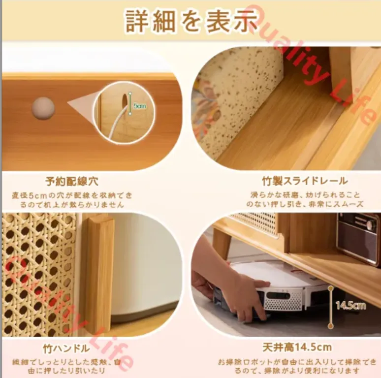 【籐パネル】引き出しパネルは籐パネルでできており、環境に優しく、独特の臭いがなく、職人技がより困難です。 籐素材、優れた靭性、優れた通気性、お手入れが簡単、耐久性があります