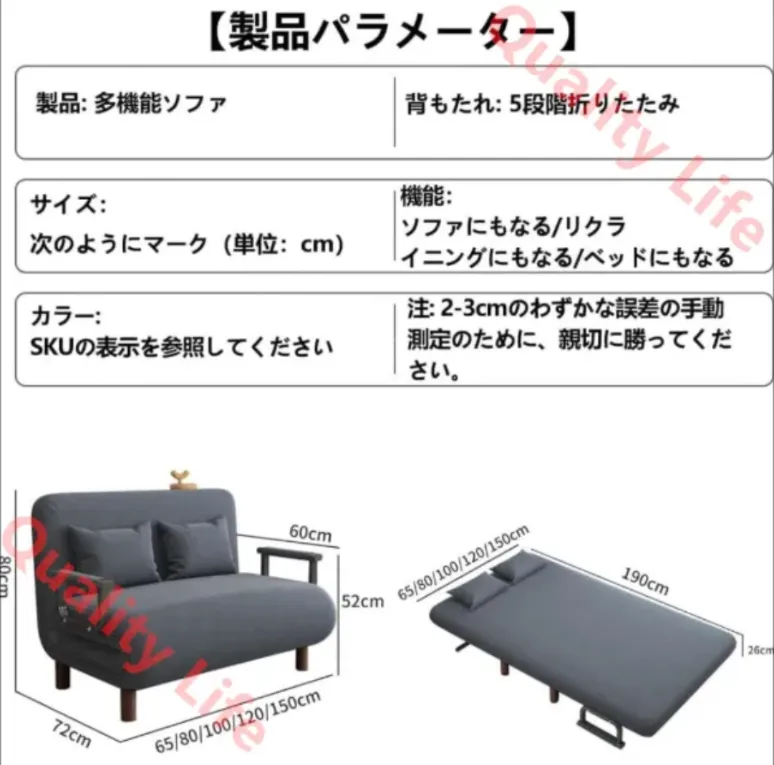 機能:ソファにもなる/リクライニングにもなる/ベッドにもなる