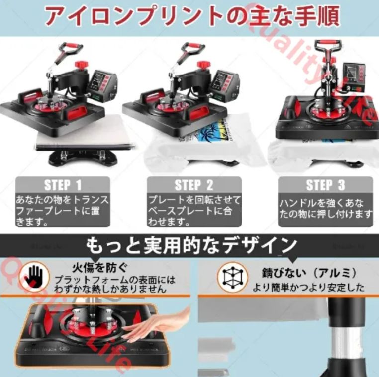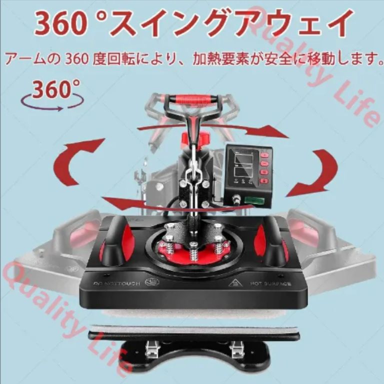 ? 360°回転:°ーープレスマシンの表示は、360度とスイング設計で回転できます。ボトムガイドの設計により、加熱要素が安全に移動できます。強力な底部ベースにより、使用するとより安定性が高まり、熱圧力機は完全に均一に完全な圧力を提供して、完全な伝送品質を確保できます。