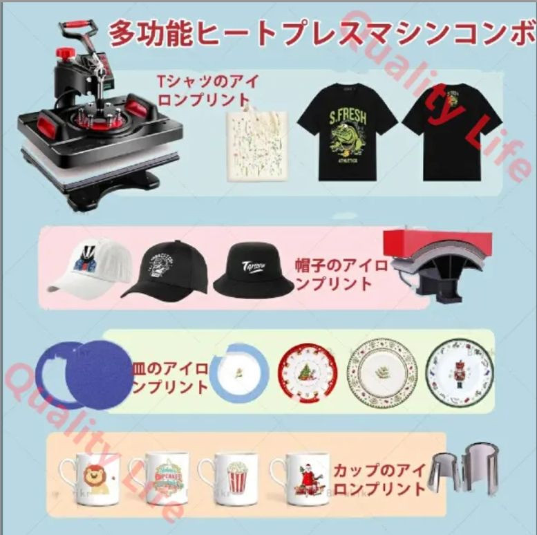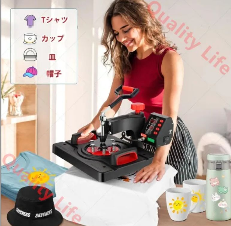 パッケージ内容:ヒートプレス機*1、帽子アイロンパッド*1、カップベーキングマシン*1、8/10インチスポンジプレートマット、カップベーキングマット*3