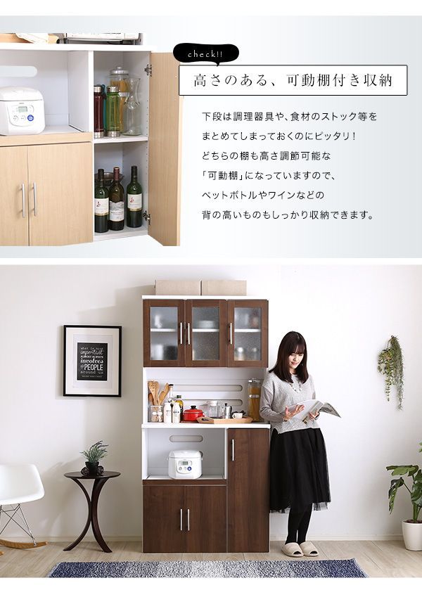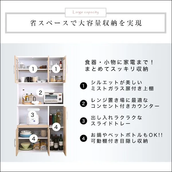 省スペースで食器や小物、家電まで収納できる大容量食器棚!
