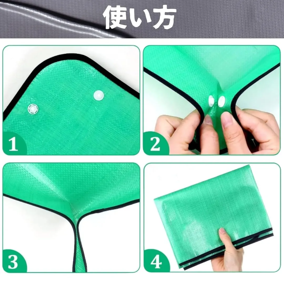 【トレイ形状で飛び散り防止】4隅のボタンを留めてトレイ形状に。厚手の生地でしっかり形状を保ち、植え替え時の用土の飛び散りを防ぎます。