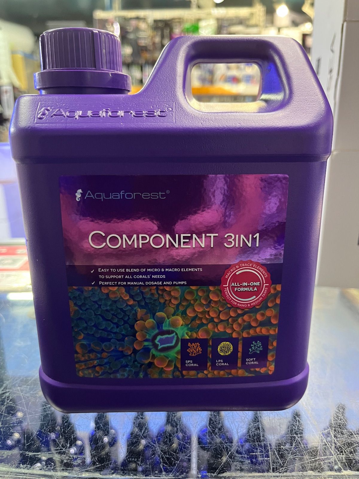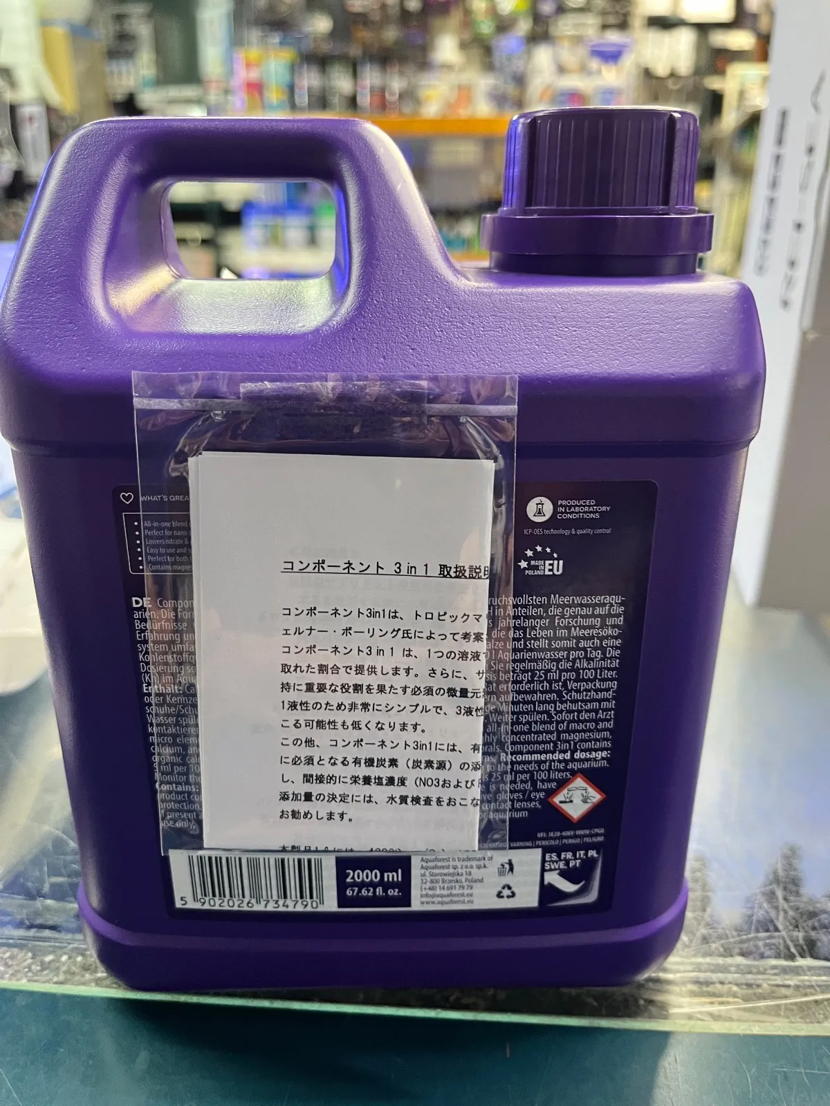コンポーネント3in1は、ボーリング法に基づいて開発された、海水水槽専用のマクロおよびミクロ成分を総合的に配合した製品です。高濃度のカルシウム、マグネシウム、KHを、サンゴの必要条件に正確に一致する割合で配合しています。コンポーネント3in1には有機カルシウム塩が含まれているため、海水水槽の炭素源としても機能します。