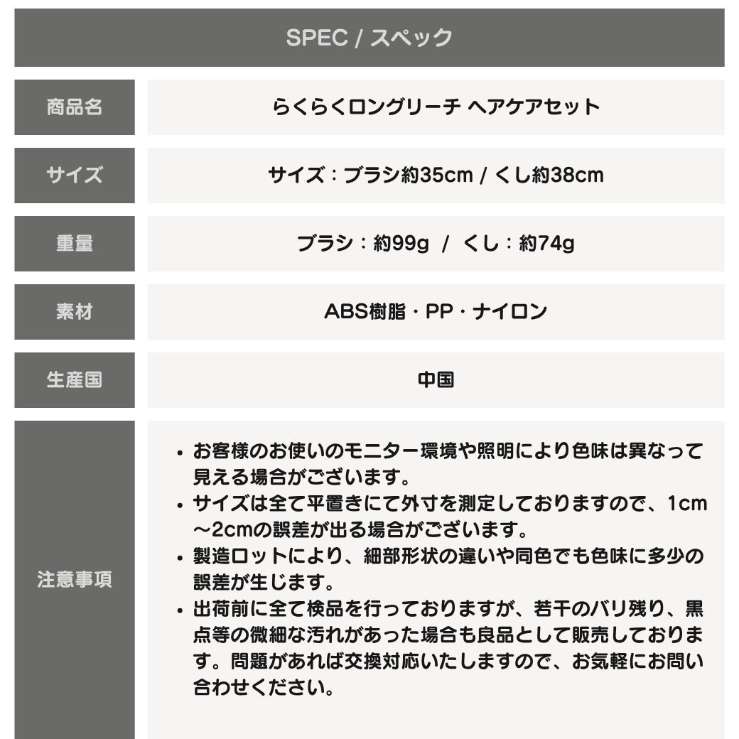 セット内容:ロングコーム ×1本 ロングブラシ ×1本