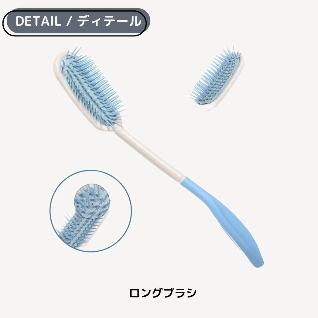 ロングハンドルのデザインにより、体勢を変えずに背中や後頭部まで簡単に届きます。ウィッグや髪の毛を優しくとかして整えることができます。