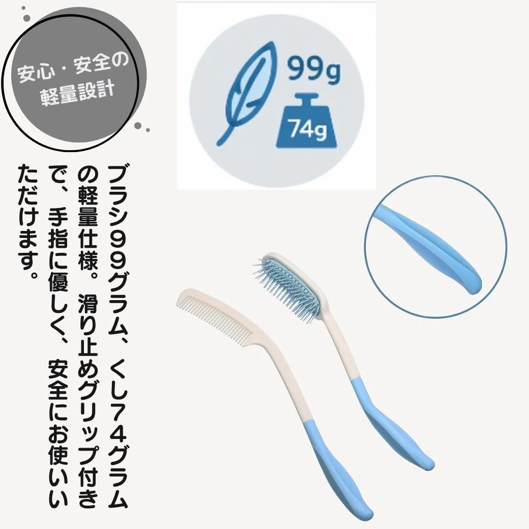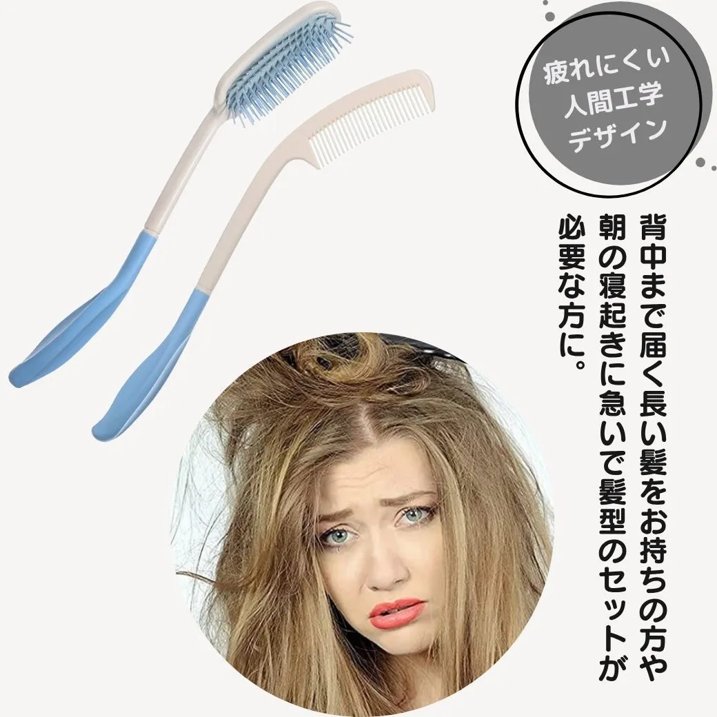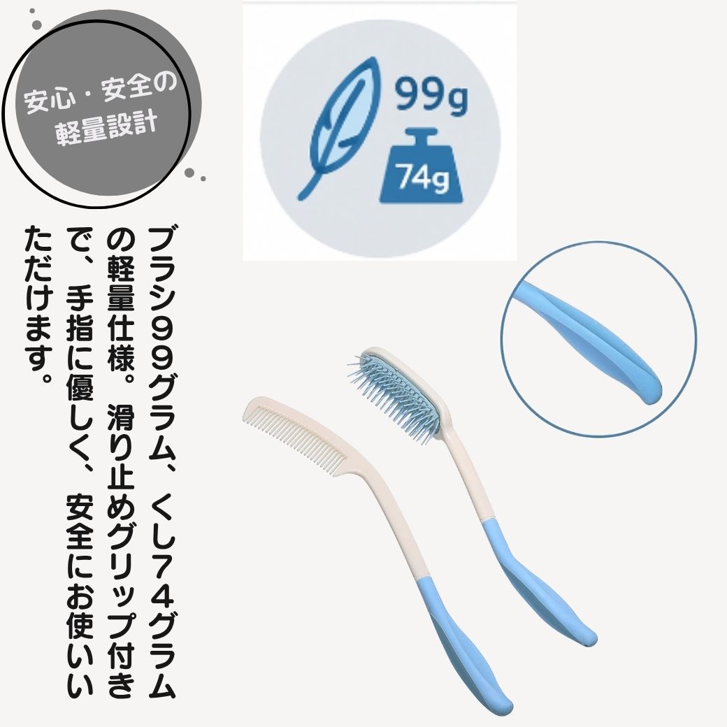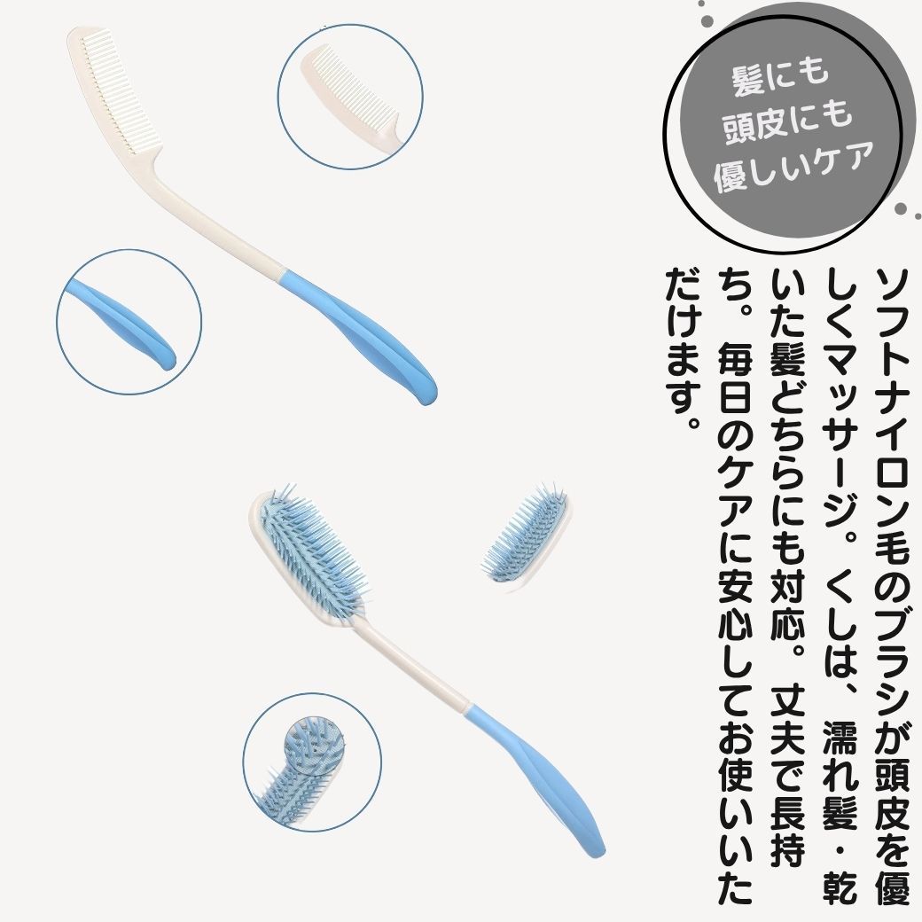 ✅ 本商品は、介護用や妊婦向けに設計されたロングハンドルのくしとブラシがセットになっています。後頭部や肩に負担をかけることなく、自分で簡単にヘアセットが楽しめます。