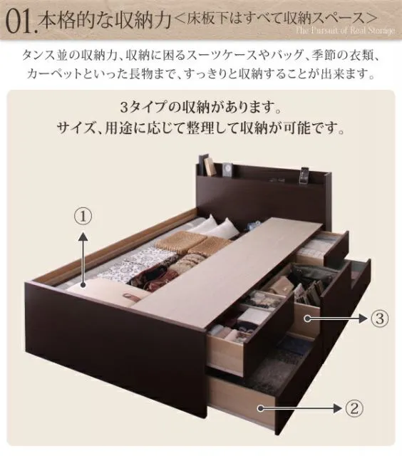 【P14倍!12/10】 お客様組立 コンセント付きチェストベッド 薄型プレミアムボンネルコイルマットレス付き ダブル