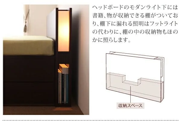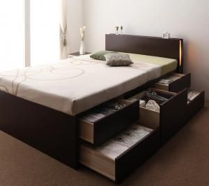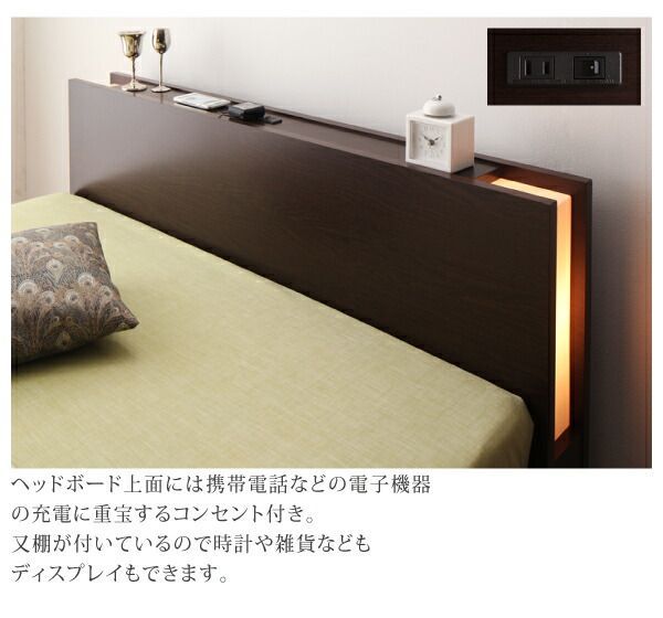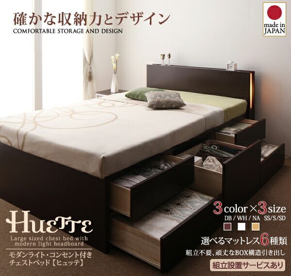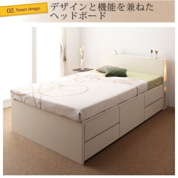 【P14倍!12/10】 お客様組立 モダンライト・コンセント付きチェストベッド 薄型スタンダードポケットコイルマットレス付き セミダブル