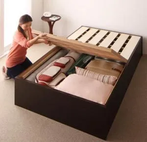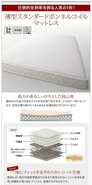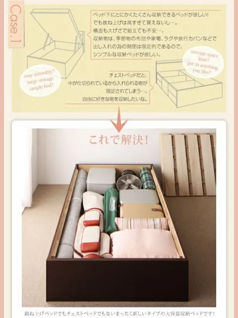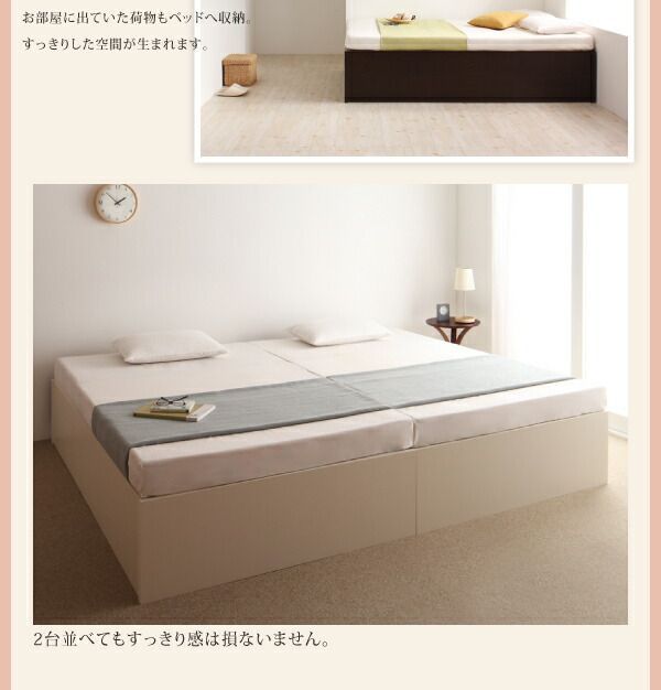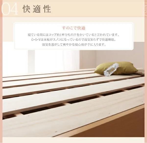 【P14倍!12/10】 お客様組立 大容量収納庫付きすのこベッド HBレス マルチラススーパースプリングマットレス付き セミダブル 深さラージ