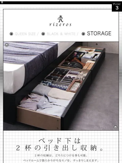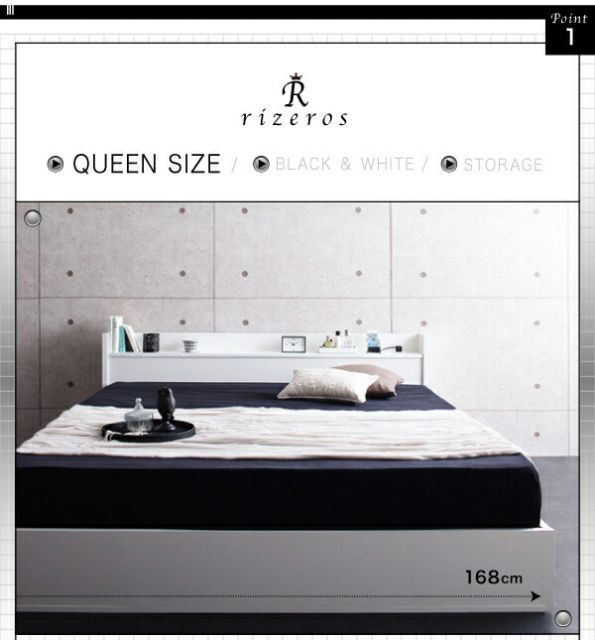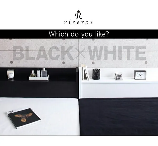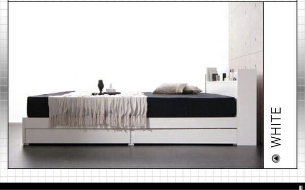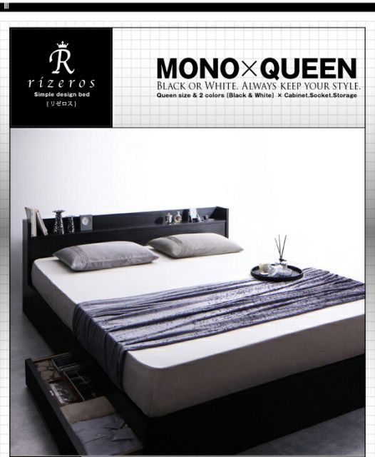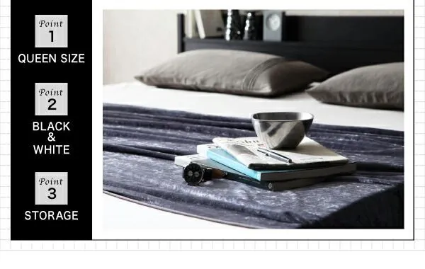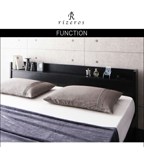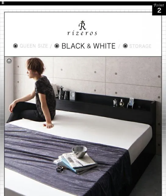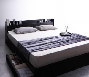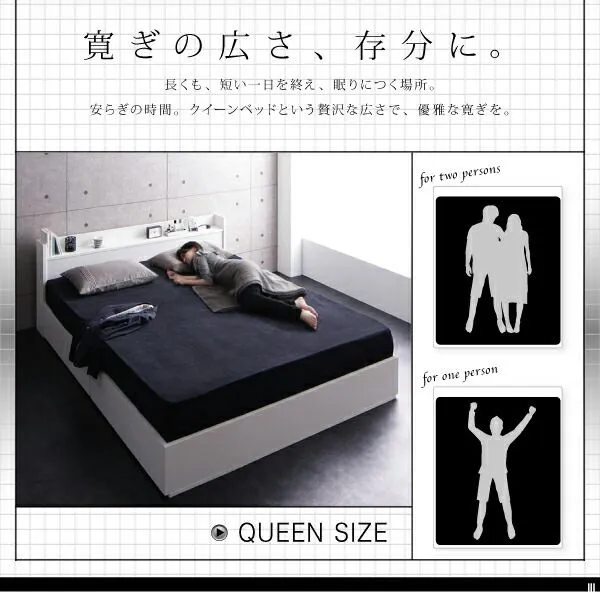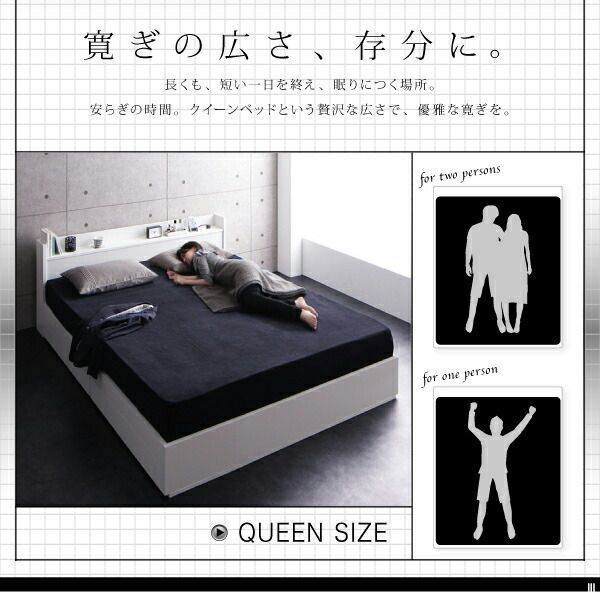 【P14倍!12/10】 棚・コンセント付収納ベッド プレミアムボンネルコイルマットレス付き クイーン(Q×1)