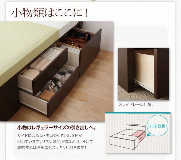 【P14倍!12/10】 お客様組立 布団が収納できるチェストベッド 薄型スタンダードボンネルコイルマットレス付き セミダブル