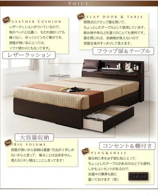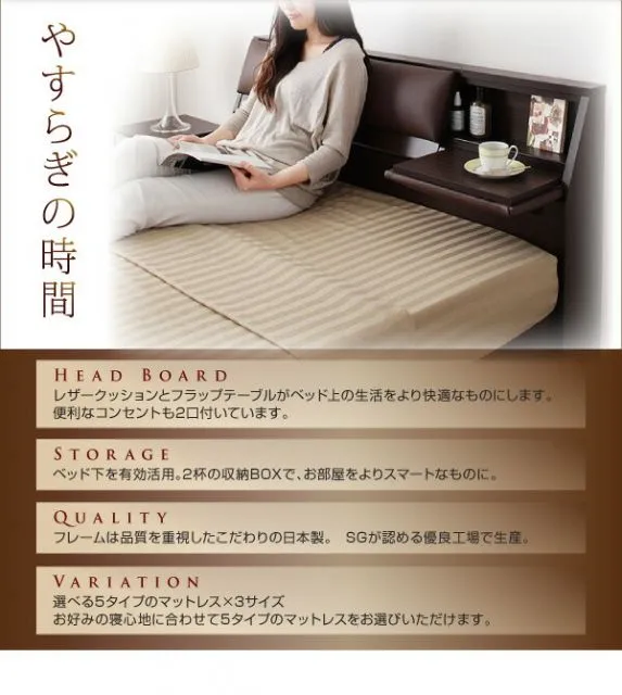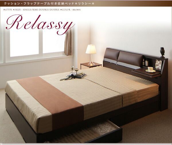 【P14倍!12/10】 クッション・フラップテーブル付き収納ベッド 国産ボンネルコイルマットレス付き セミダブル