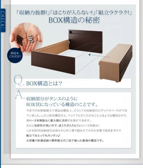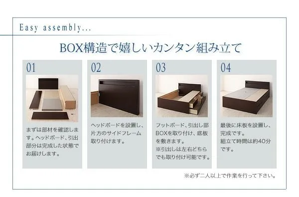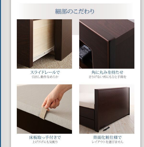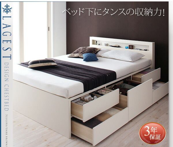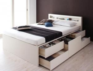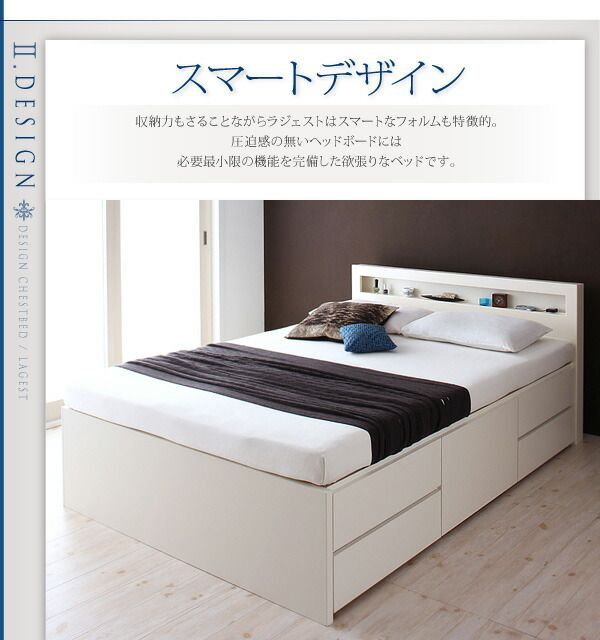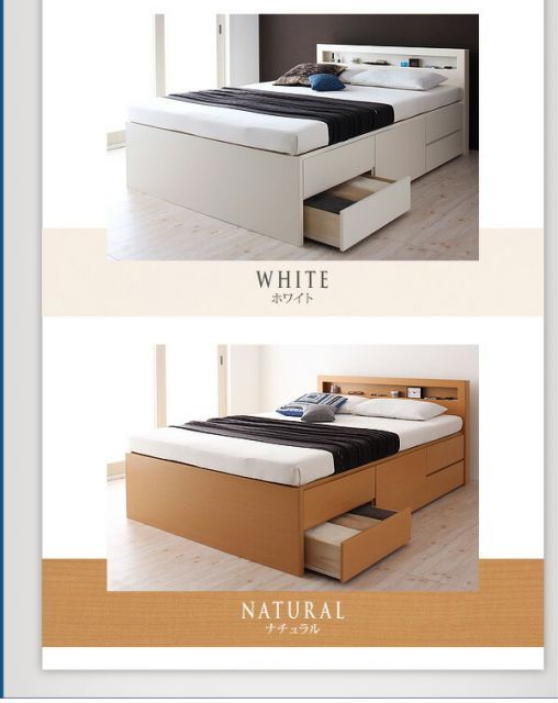 【P14倍!12/10】 お客様組立 棚・コンセント付きチェストベッド 薄型スタンダードポケットコイルマットレス付き セミダブル