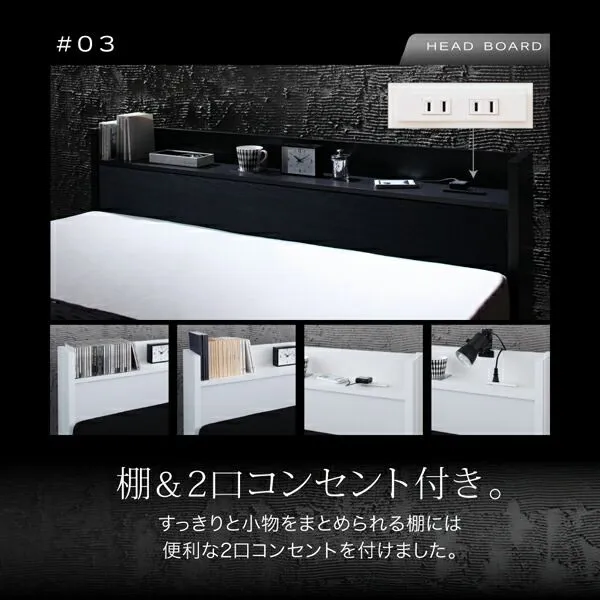【P14倍!12/10】 棚・コンセント付き収納ベッド マルチラススーパースプリングマットレス付き ダブル