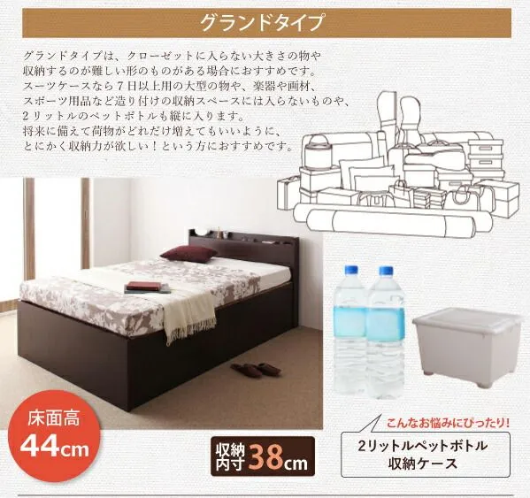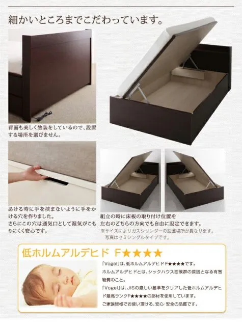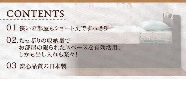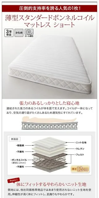 【P14倍!12/10】 ベッド ショート丈 収納付きベッド マットレス付き 一人暮らし 収納 お客様組立 薄型スタンダードボンネルコイルマットレス付き 横開き ヘッド付 セミシングル ショート丈 深さラージ