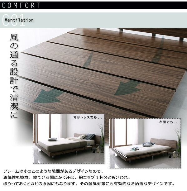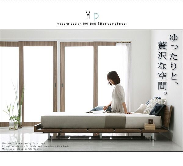 【P14倍!12/10】 モダンデザインローベッド プレミアムボンネルコイルマットレス付き フルレイアウト キング(K×1) フレーム幅180