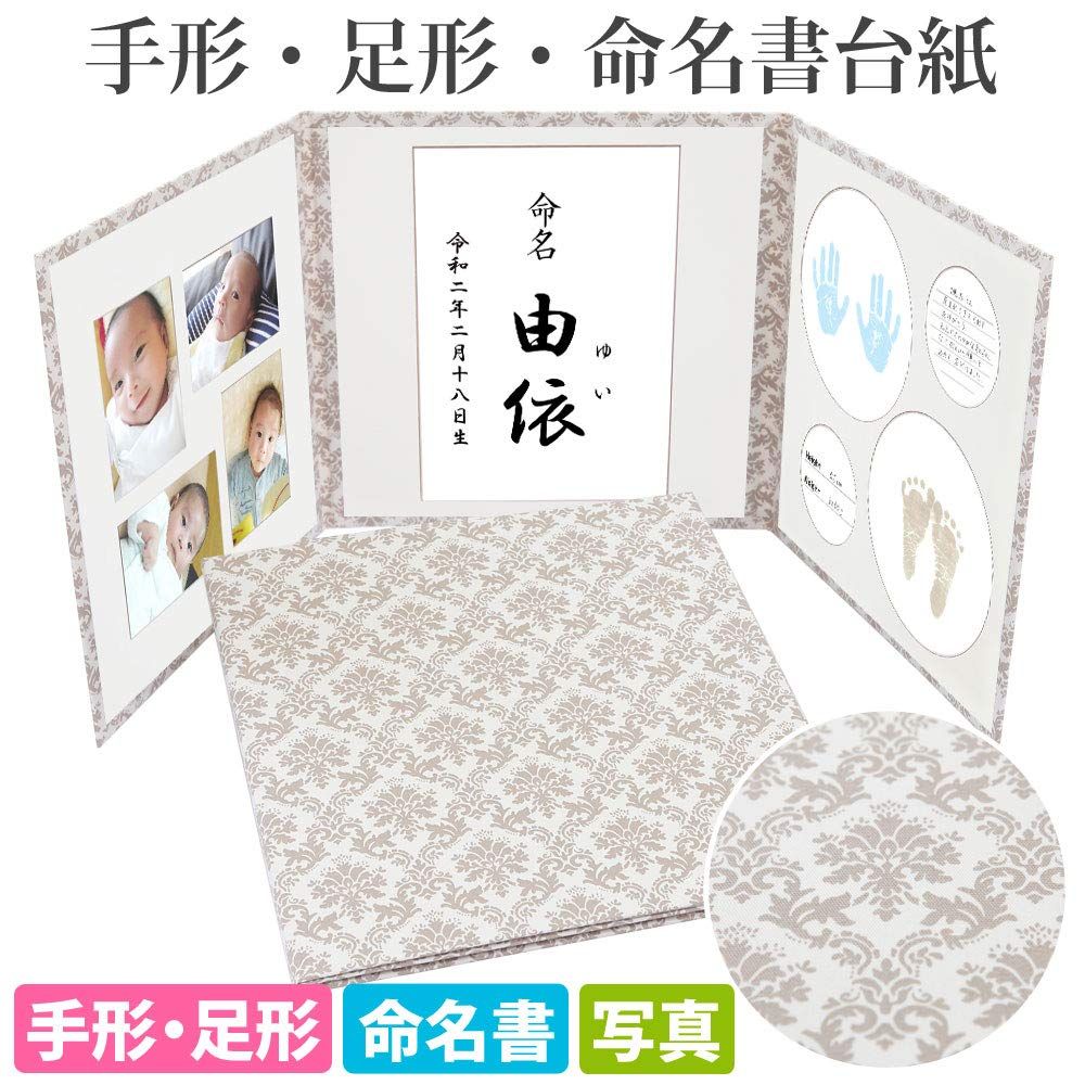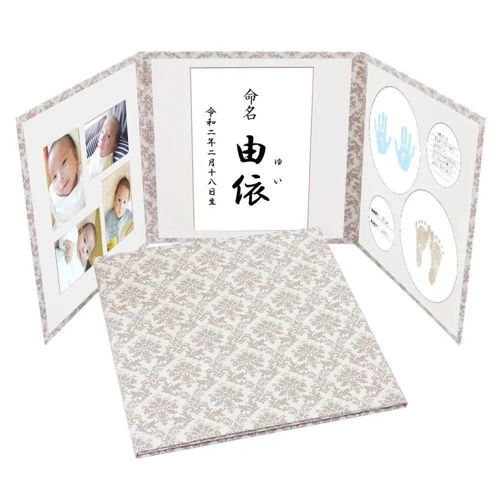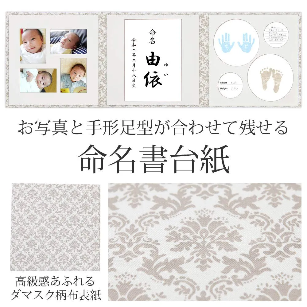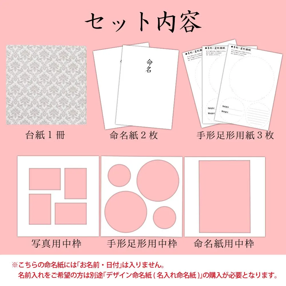 中枠3枚(命名書用/L判写真4枚用/手形・足形用)・命名紙2枚・手形・足形用紙3枚付き 日本製