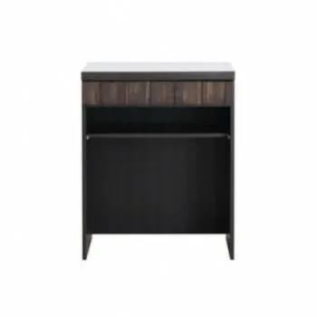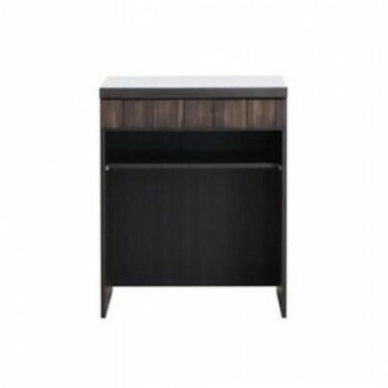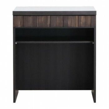 凹凸を出して加工したアカシア無垢前板の味のある質感が魅力のダストタイプで小ぶりなカウンター。散らかりがちなゴミ箱周辺もスッキリ収納できます。天板はステンレス仕様。メンテナンスが楽で清潔に保てます。