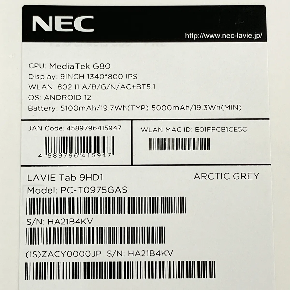 こちらは「NEC LAVIE Tab T9 PC-TO975GAS アークティックグレー タブレット 未開封 」でございます。