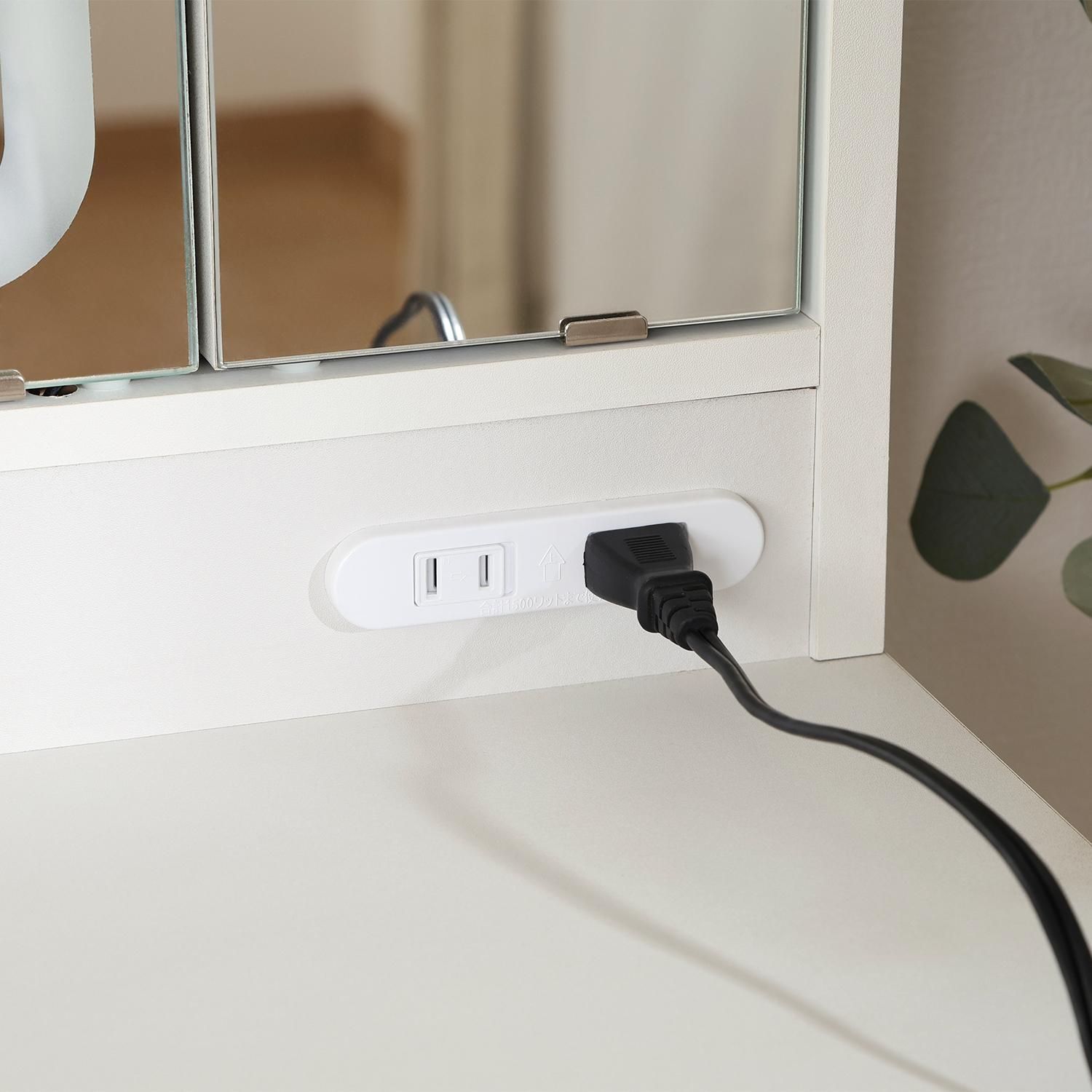 2つのコンセントもついている為、ヘアアイロンなどを使ってヘアセットできます。