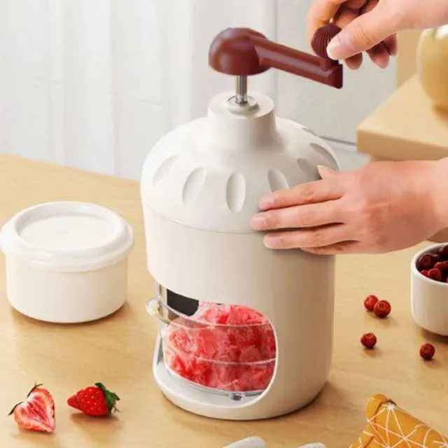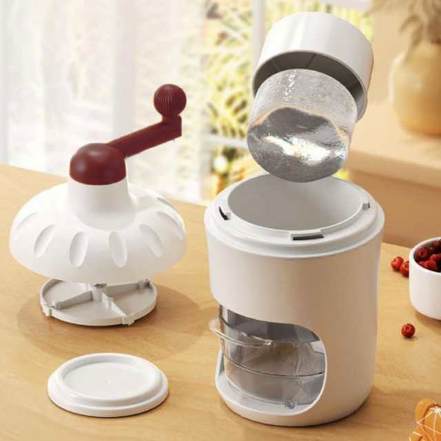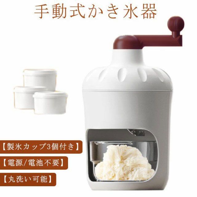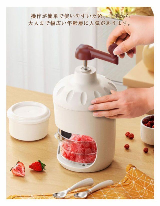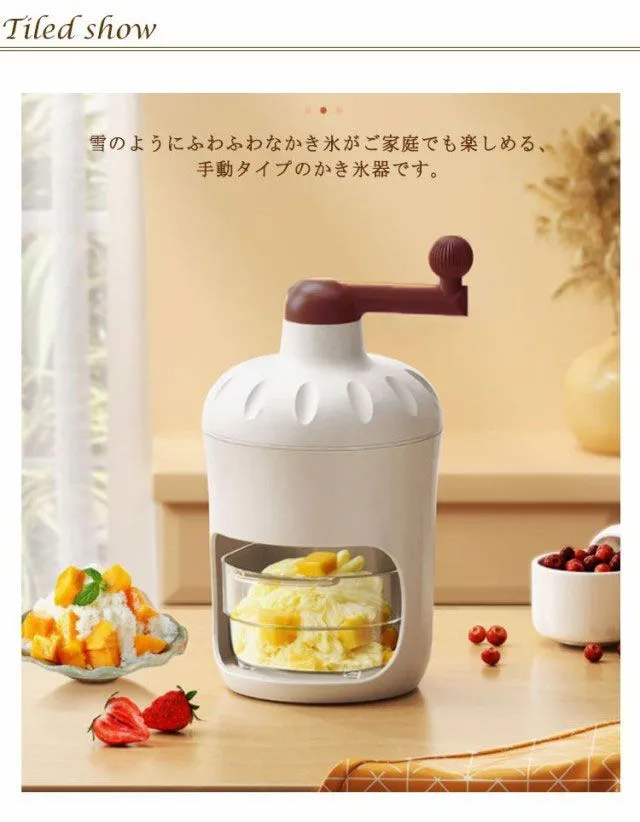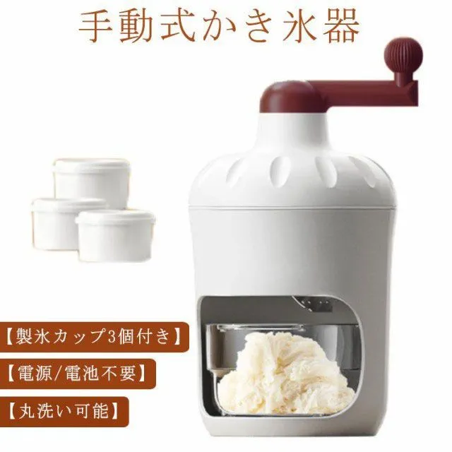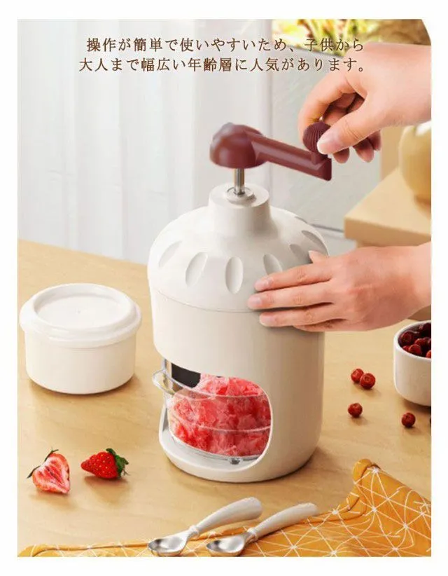 - 手動式かき氷器:電源・電池が不要で、どこでも使用可能。