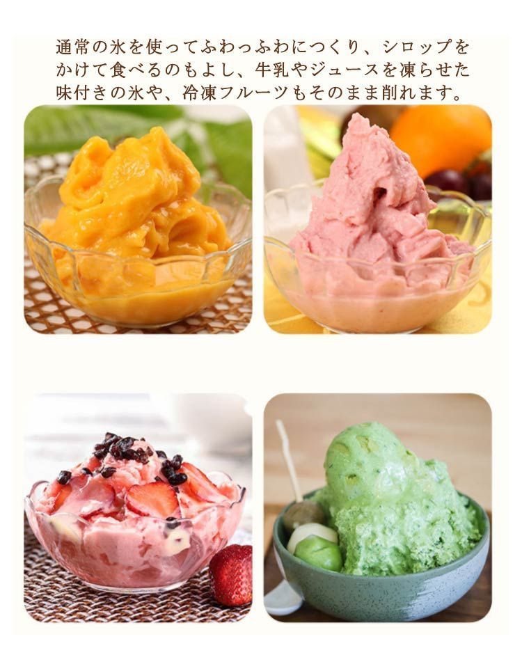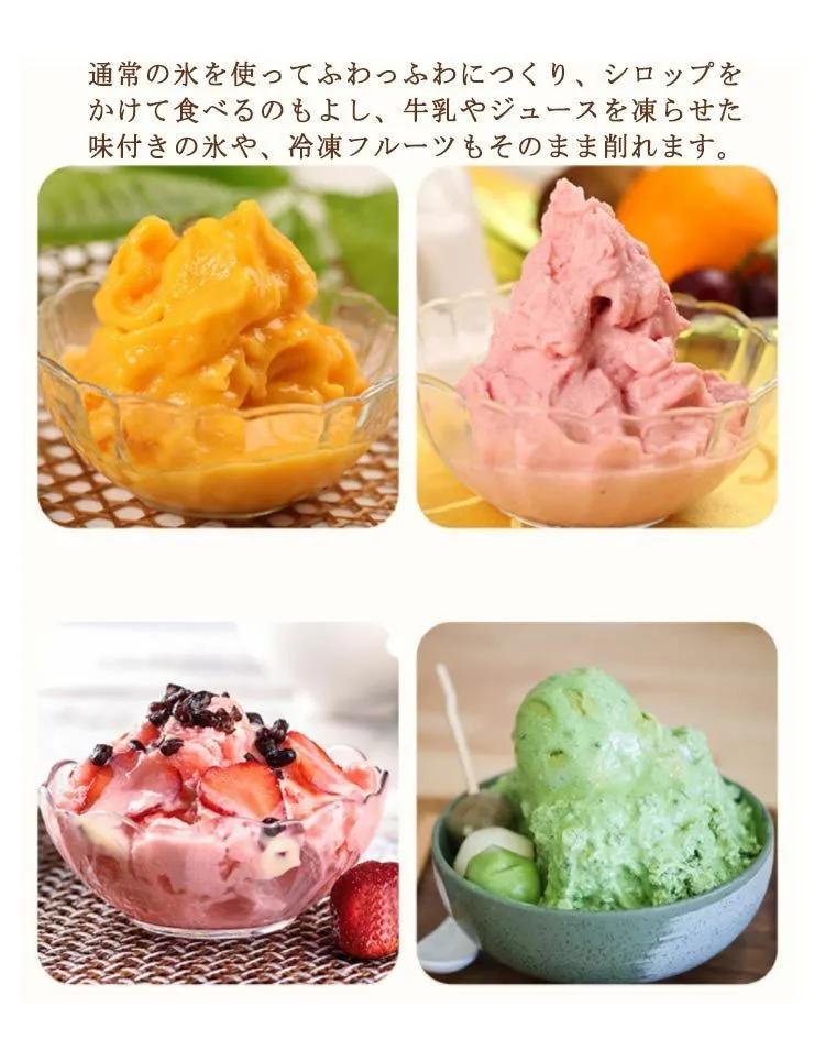 - ふわふわ食感:雪のように軽い口当たりのかき氷が作れます。