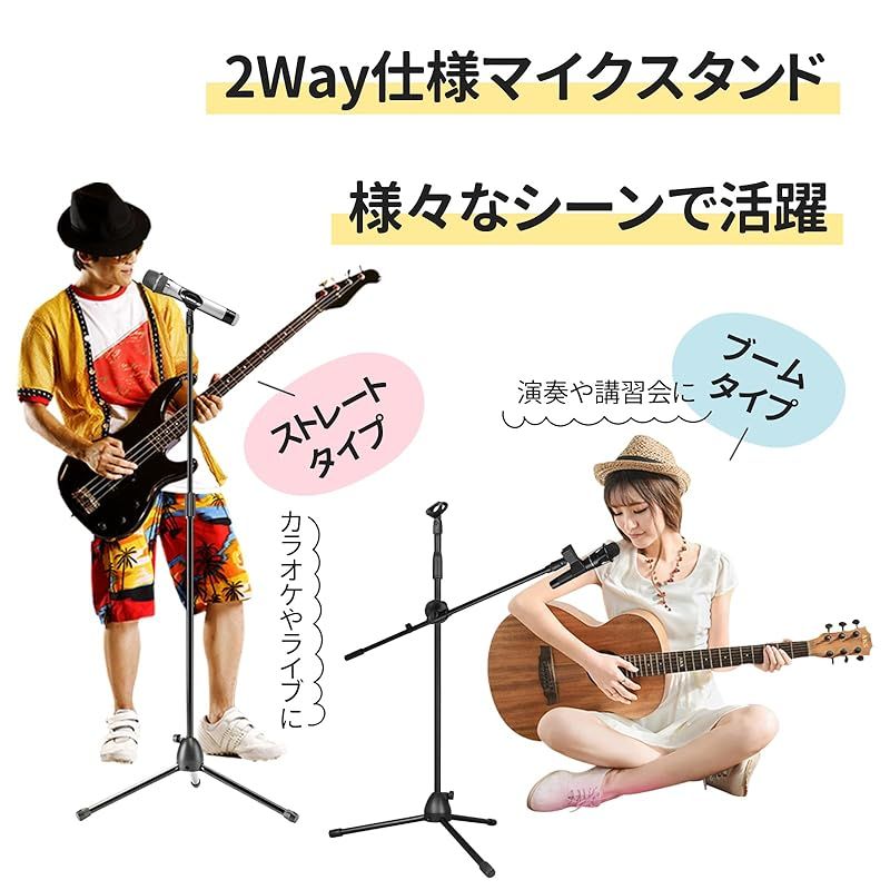 【ブーム&ストレート2wayタイプ】ブーム&ストレート兼用の使いやすい2Wayタイプのマイクスタンドです。宅録、講習会、ライブ録画、弾き語りの際にはボーカルマイク用・アコギ集音マイク用。様々な音楽シーンで活躍します。