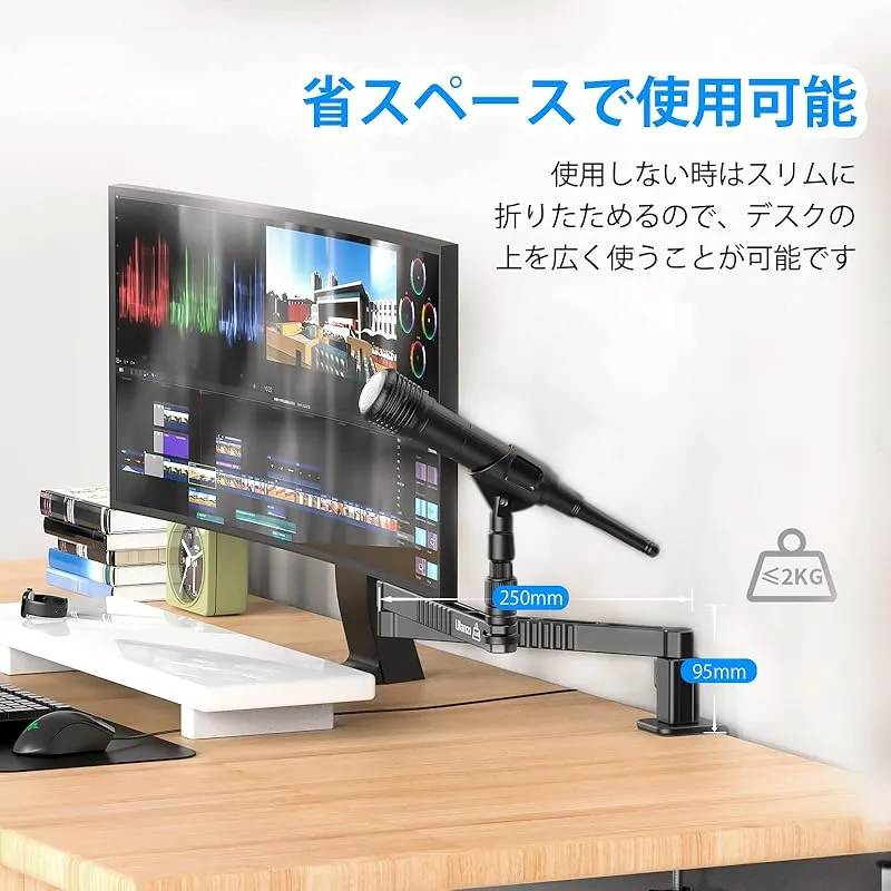 商品名:VIJIM LS26 マイクスタンド マイクアーム 卓上用 クランプ式 デスクスタンド 角度調整可能 マイクホルダー 1/4"3/8"5/8"変換ネジマウント付き 折りたたみ モニター下部からの設置/レコーディング/配信/ゲーミング/動画制作に適用 耐荷重2k