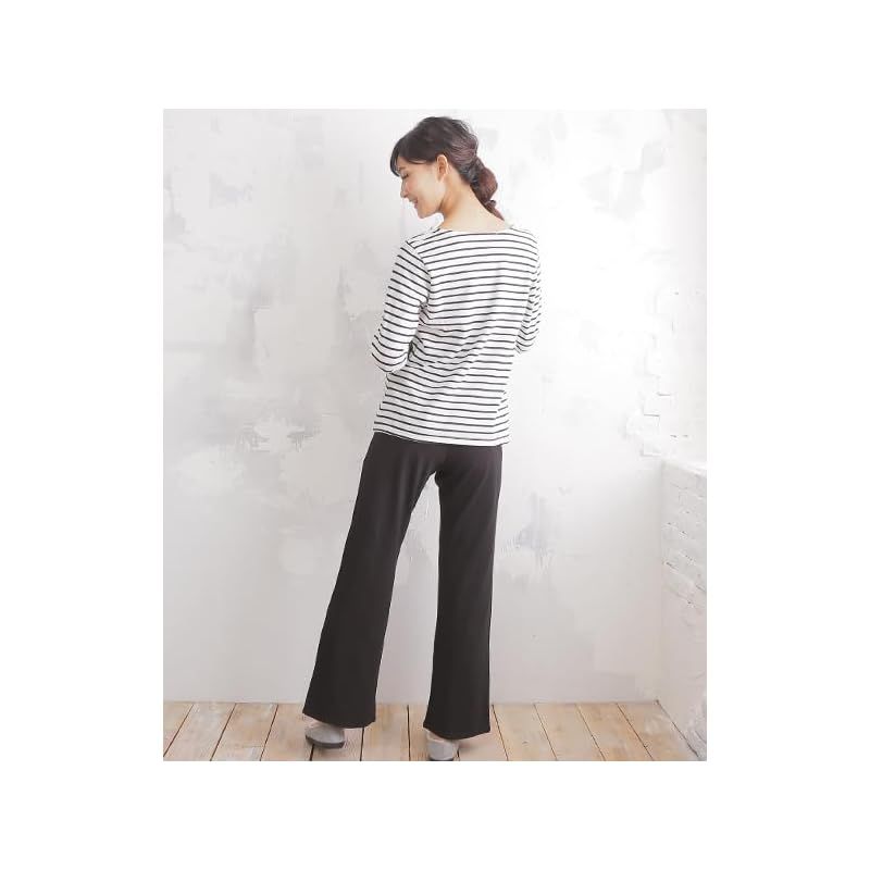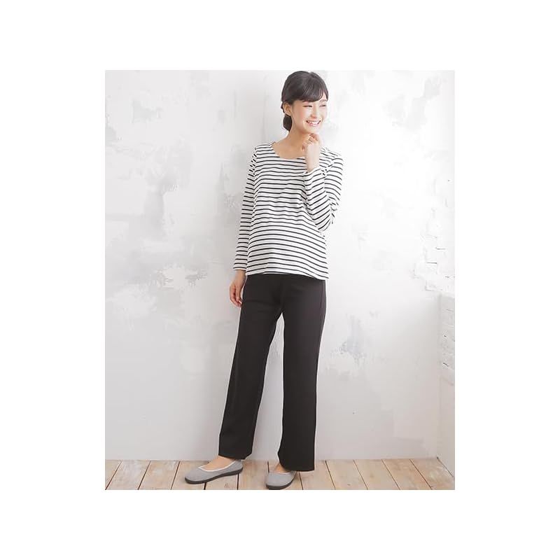 【新品】 [犬印本舗] らくちんパンツ ゆったりストレート 10分丈 ブラック L 204-8351