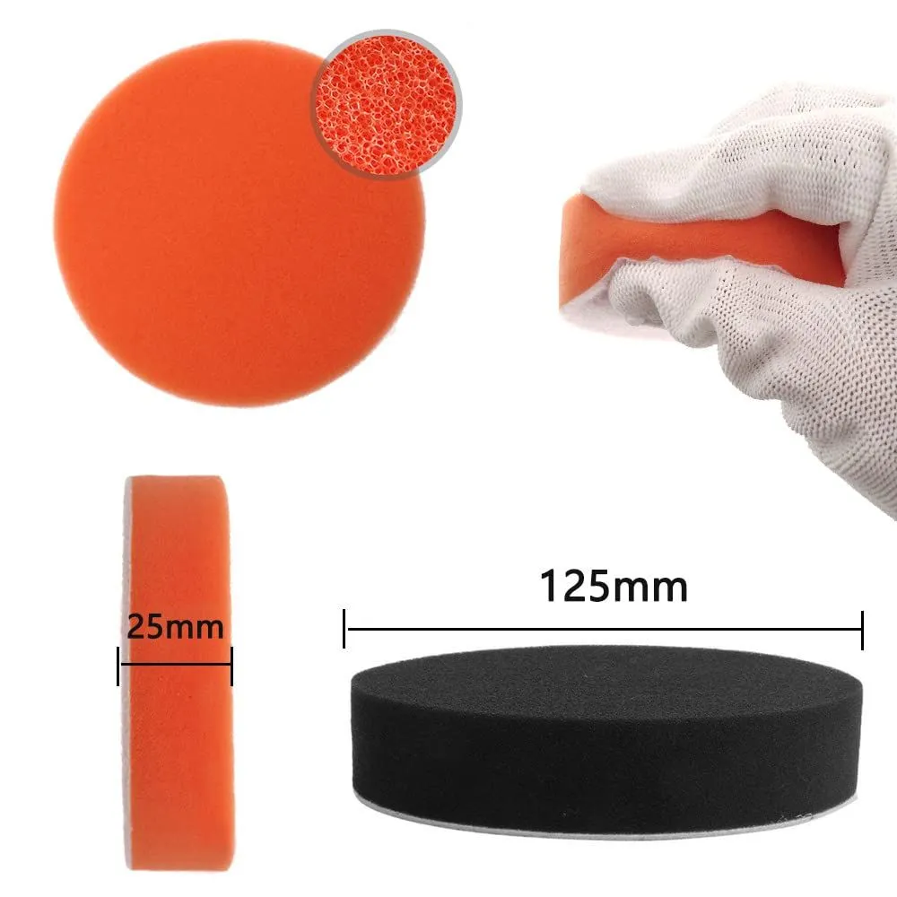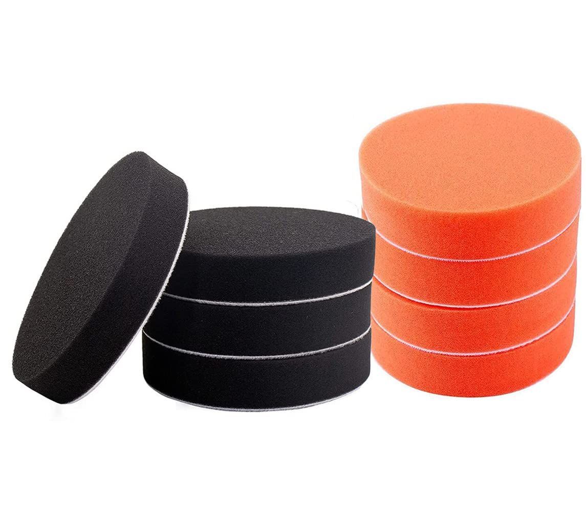 スポンジバフ 洗車 125mm 電動ポリッシャー用 研磨スポンジ ウレタンバフ 車磨き用 ワックスがけ スポンジバフ 研磨バフ ポリッシャーバフ 平型スポンジ マジックテープ式 8個セット (ブラック+オレンジ)