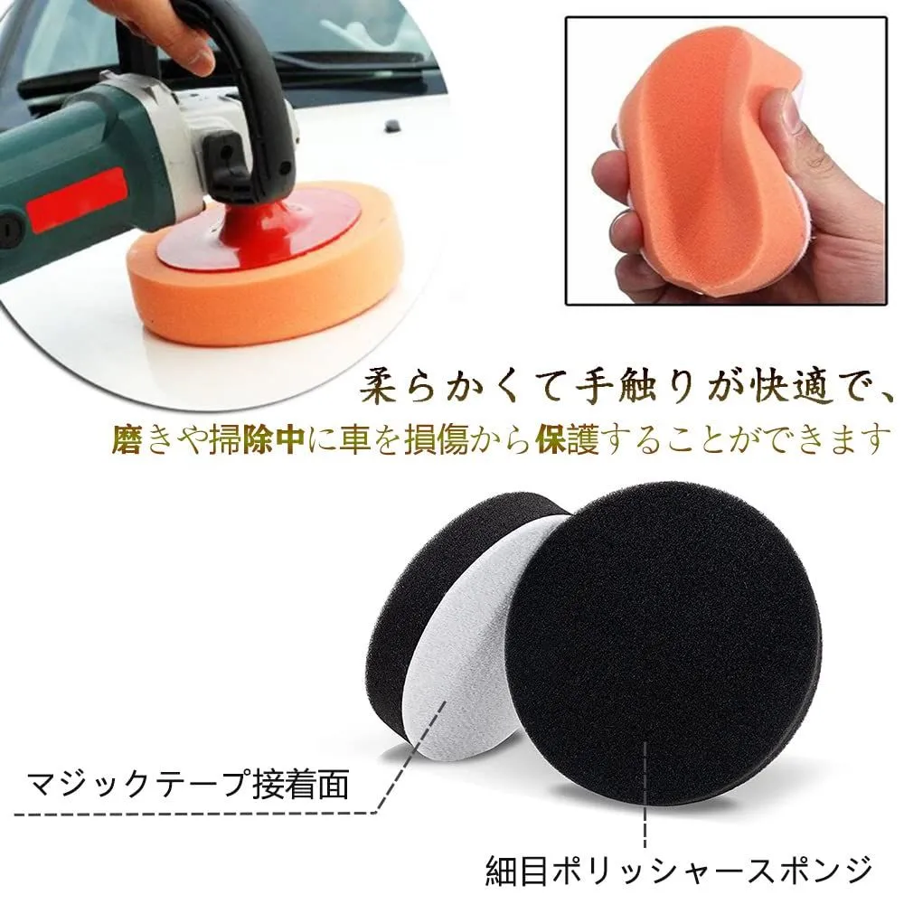 3.マジックテープ式研磨スポンジなので取付が簡単になり、密着面もしっかり付く、様々な場所にポリッシャー磨き可能です。電動ポリッシャーや電動ドリル、グラインダーなどに取り付けてお使いいただけます。