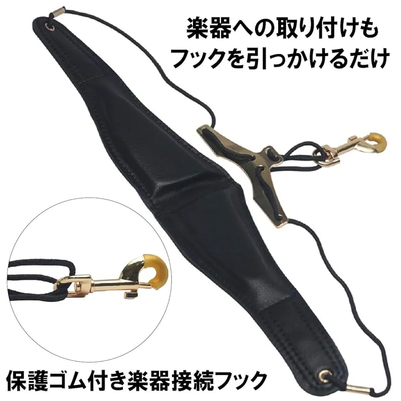 商品名:HAMILO サックス ストラップ 楽器 フック 吹奏 サキソフォン 演奏 練習 吹奏楽 (ブラック)